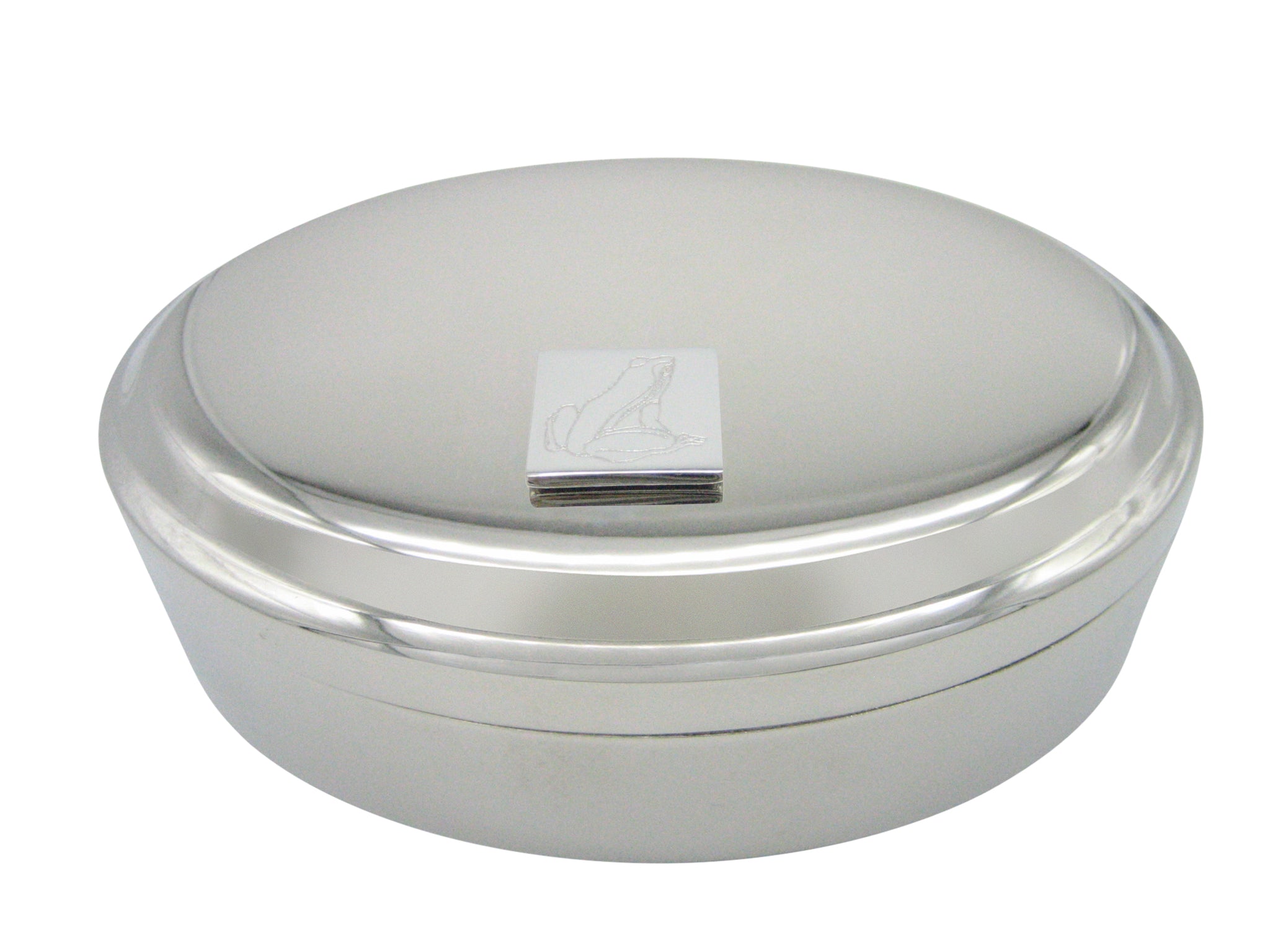 Silver Toned Etched Frog Pendant Oval Trinket Jewelry Box