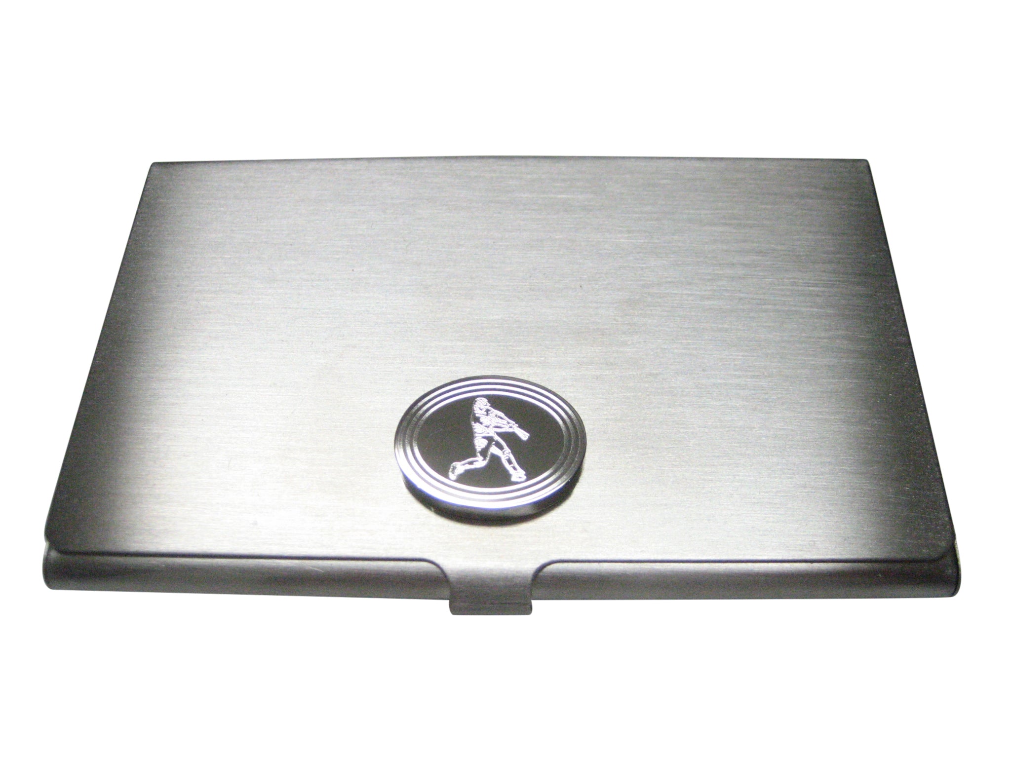 Silver Toned Etched Oval Baseball Player Business Card Holder