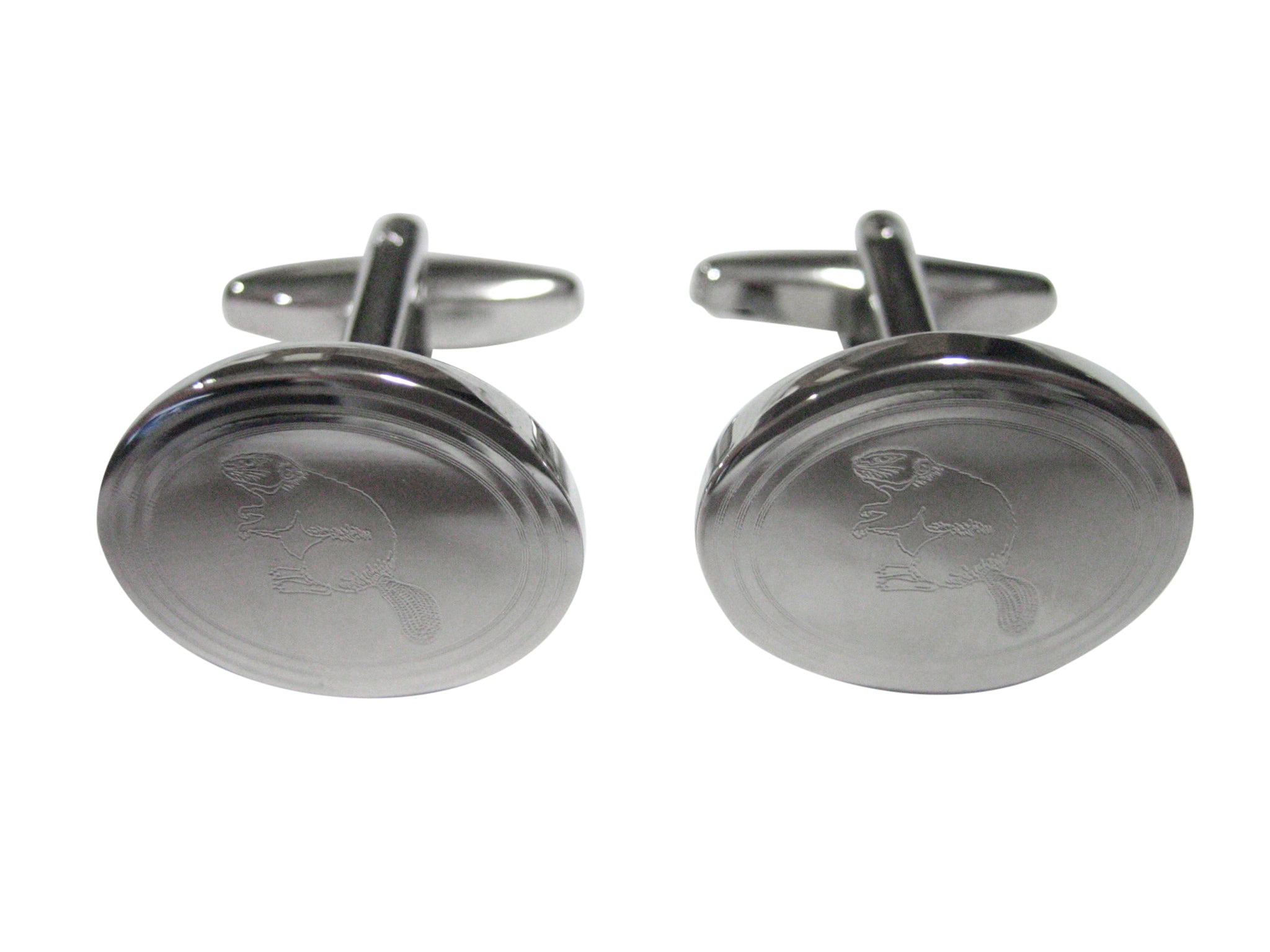 Silver Toned Etched Oval Beaver Cufflinks