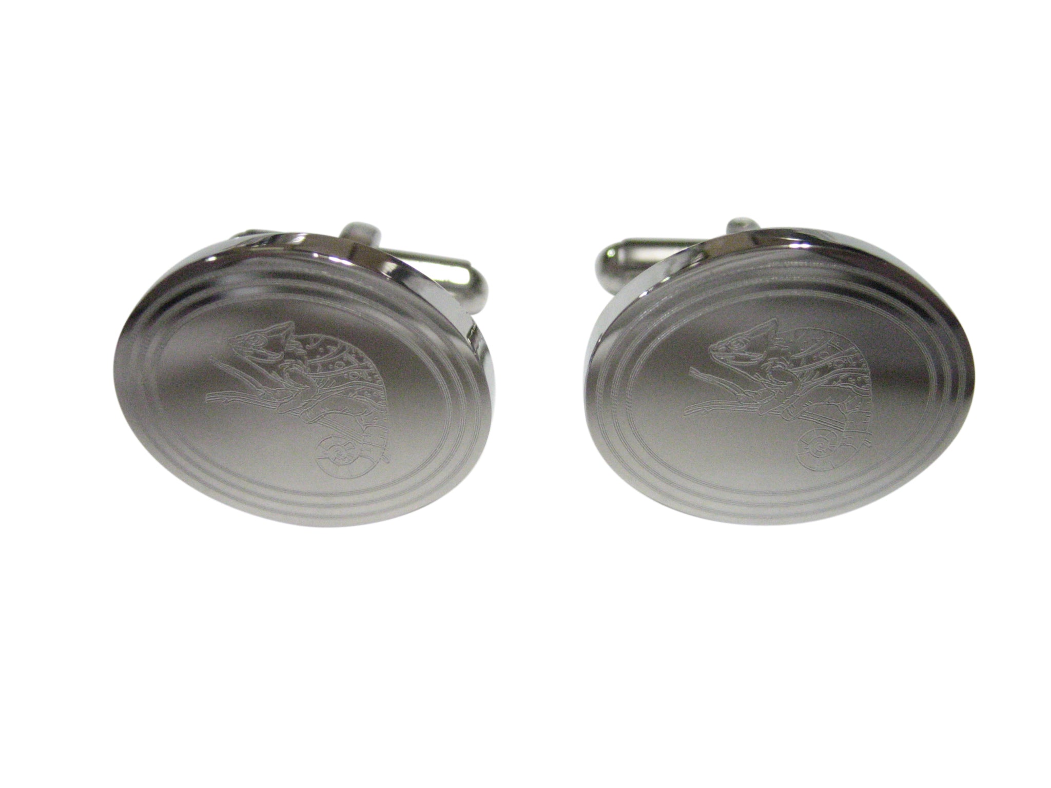Silver Toned Etched Oval Chameleon Cufflinks