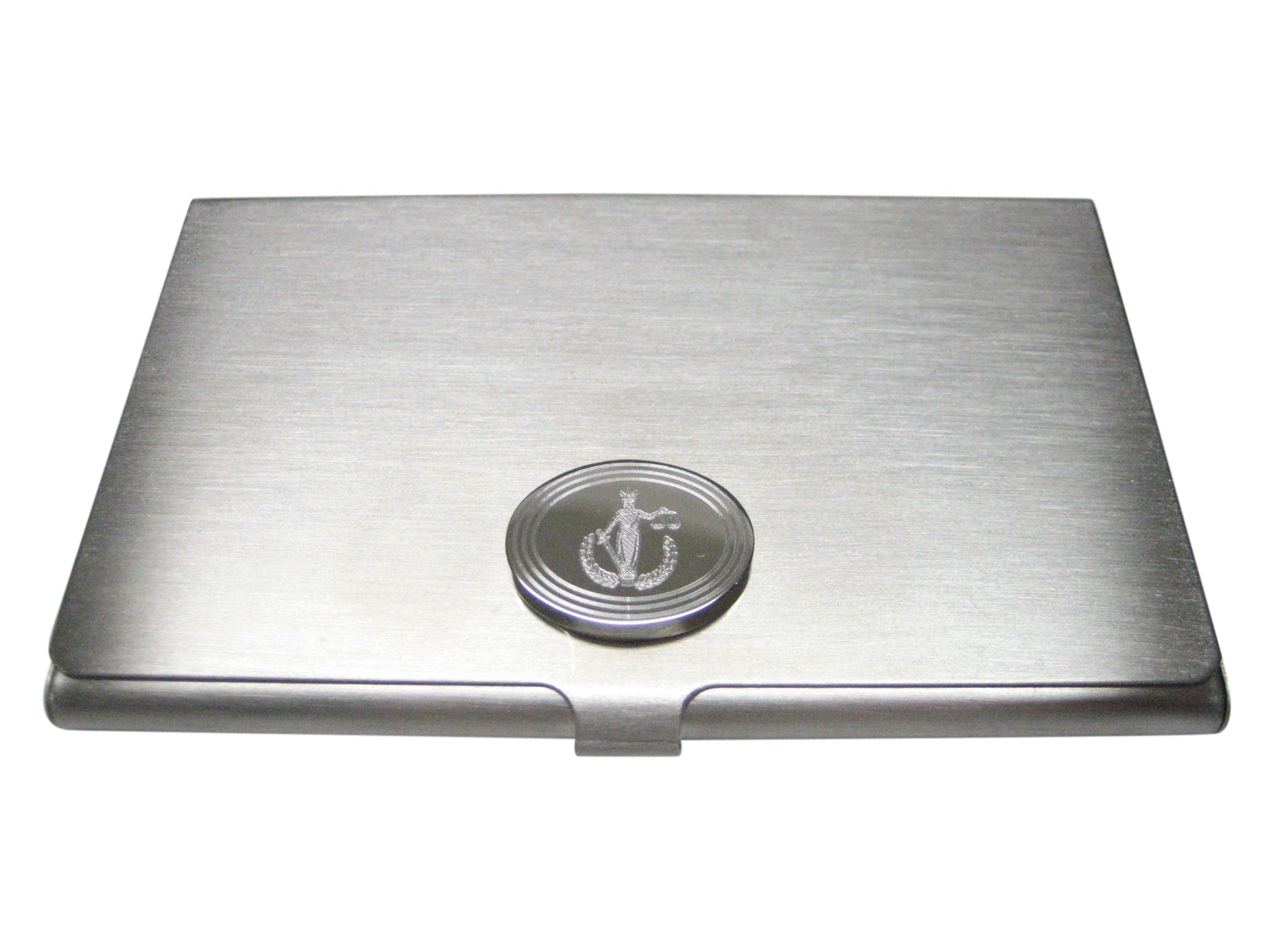 Silver Toned Etched Oval Lady Justice Business Card Holder