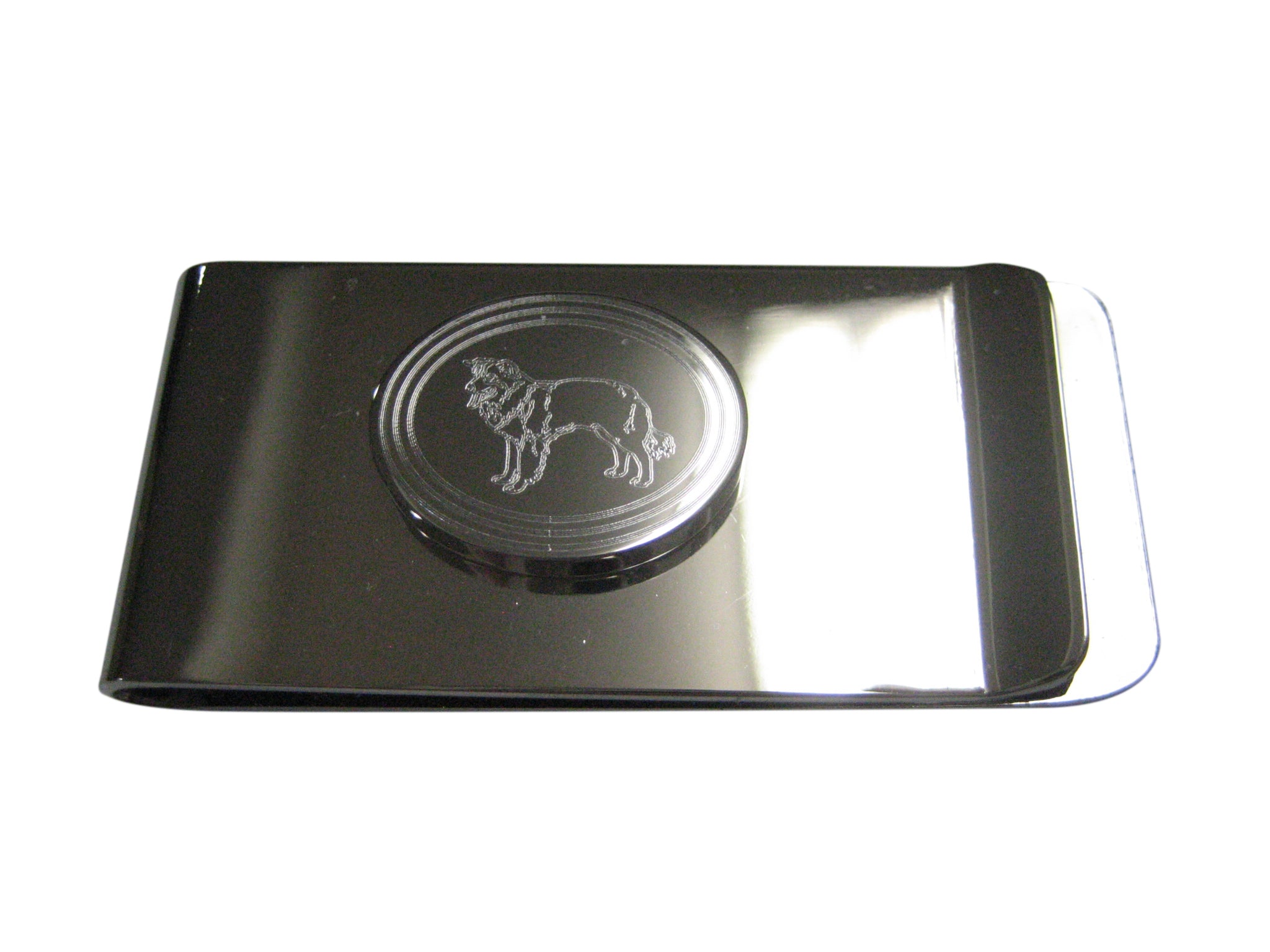 Silver Toned Etched Oval Lassie Dog Money Clip
