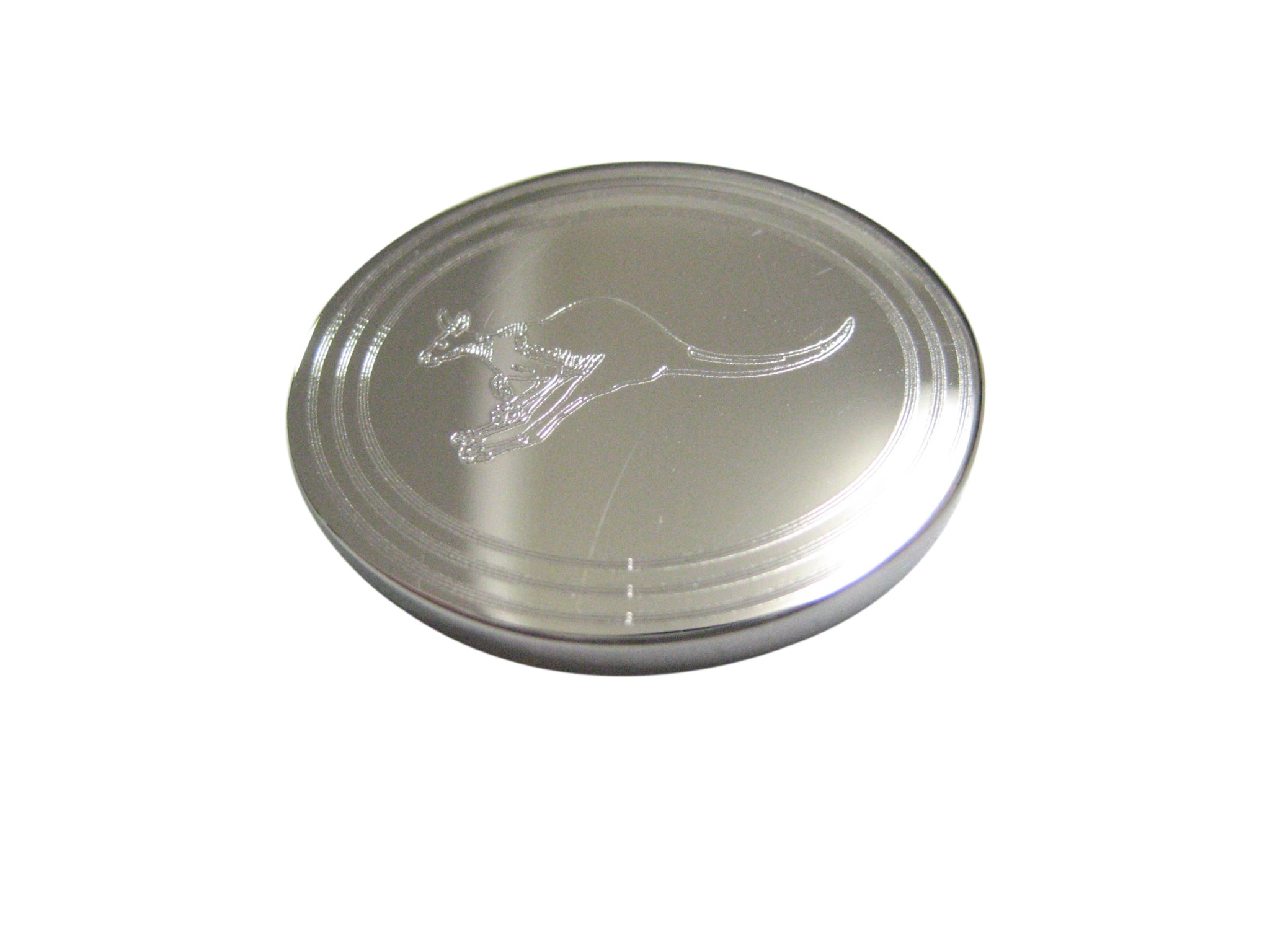 Silver Toned Etched Oval Leaping Kangaroo Magnet
