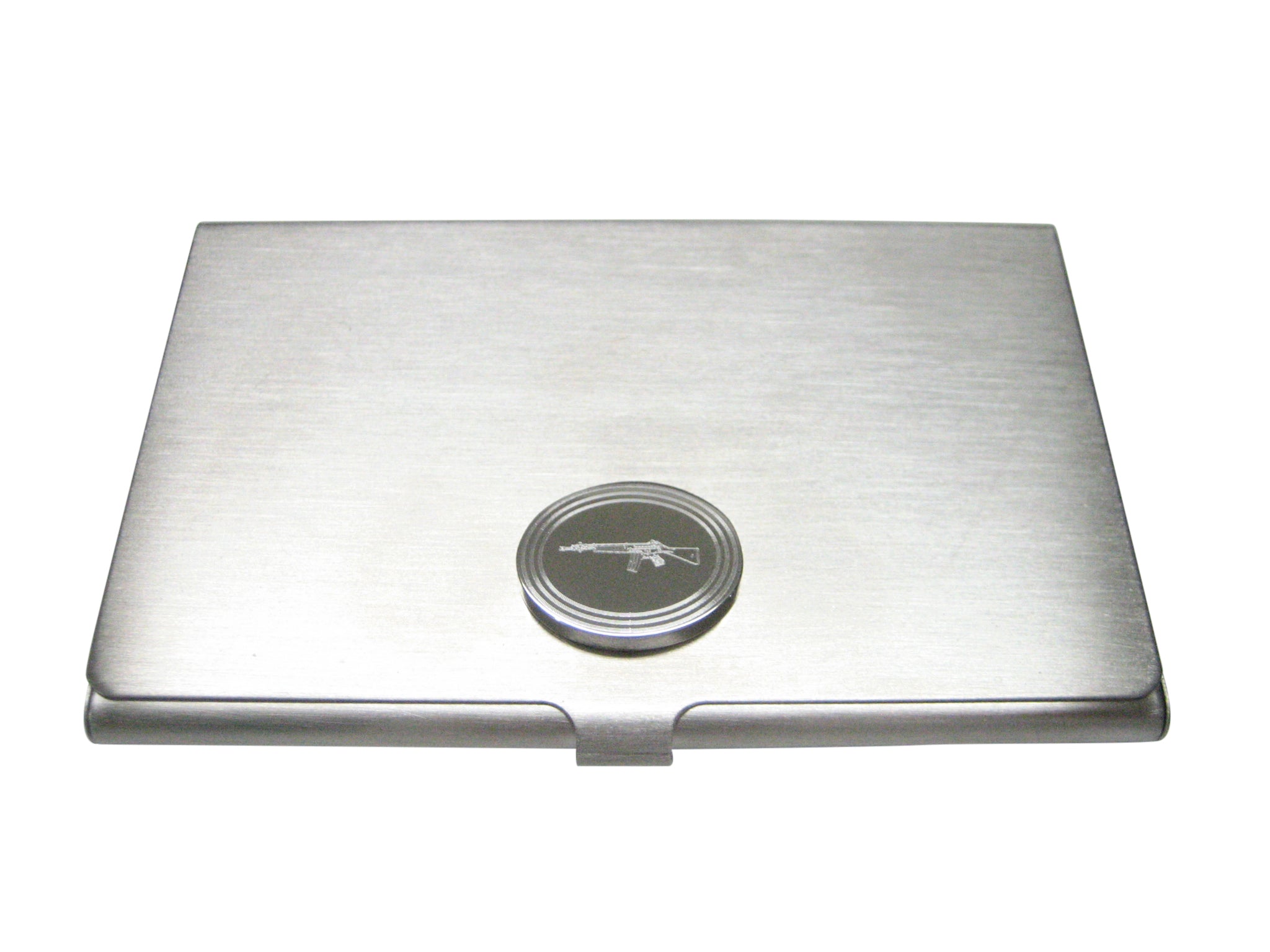 Silver Toned Etched Oval Left Facing AK47 Rifle Business Card Holder