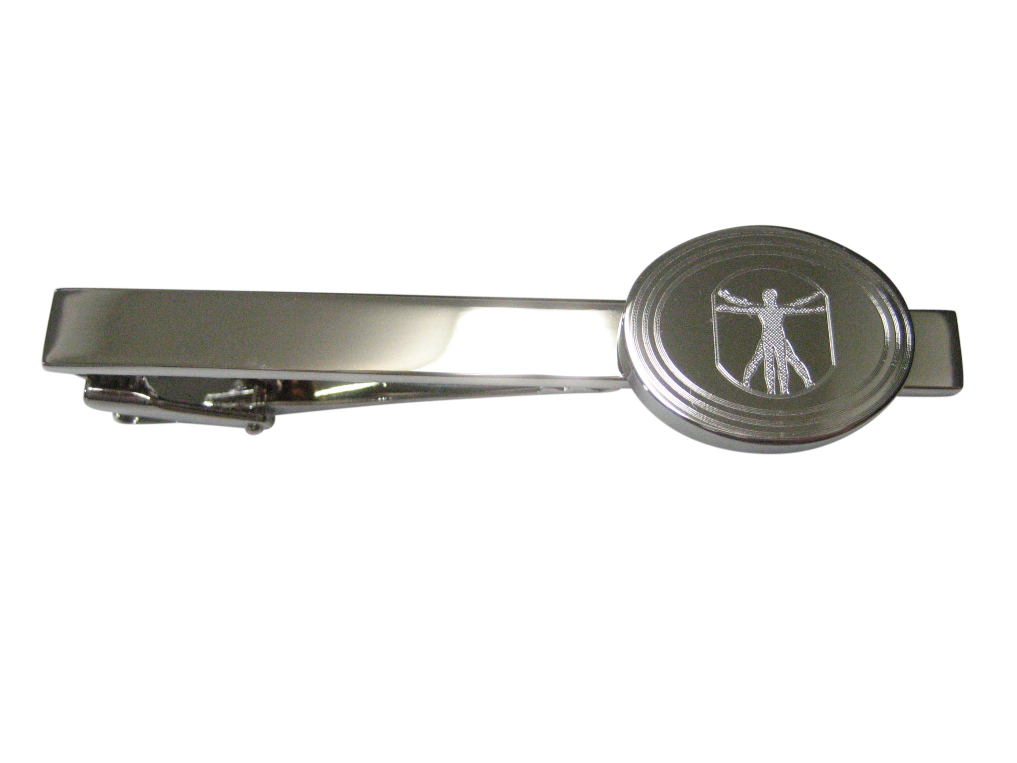 Silver Toned Etched Oval Leonardo Da Vinci Vitruvian Man Tie Clip