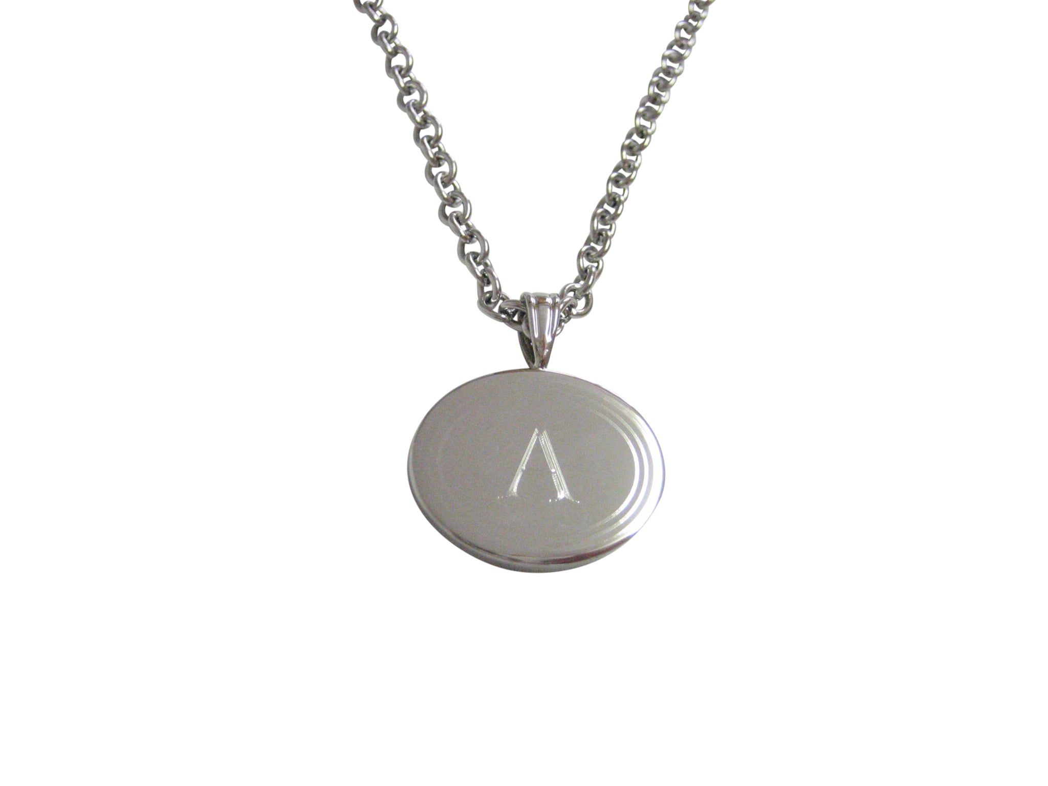 Silver Toned Etched Oval Letter A Monogram Pendant Necklace
