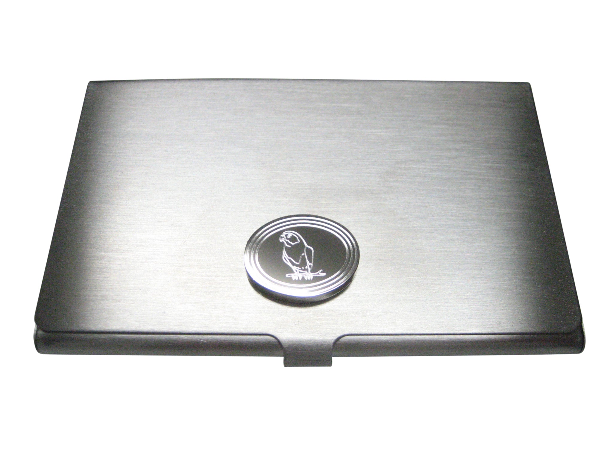 Silver Toned Etched Oval Macaw Bird Business Card Holder