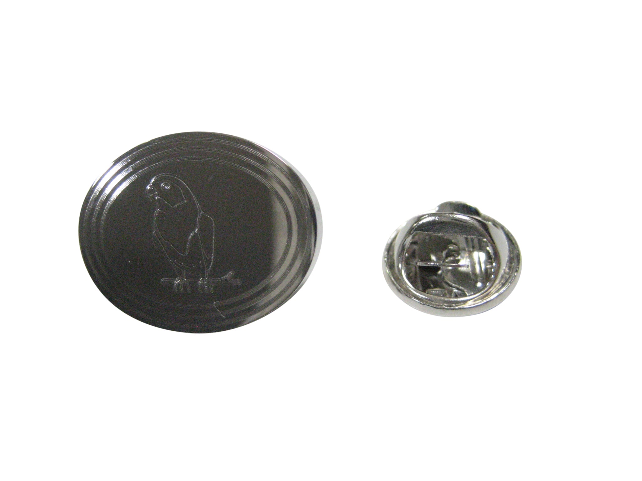 Silver Toned Etched Oval Macaw Bird Lapel Pin