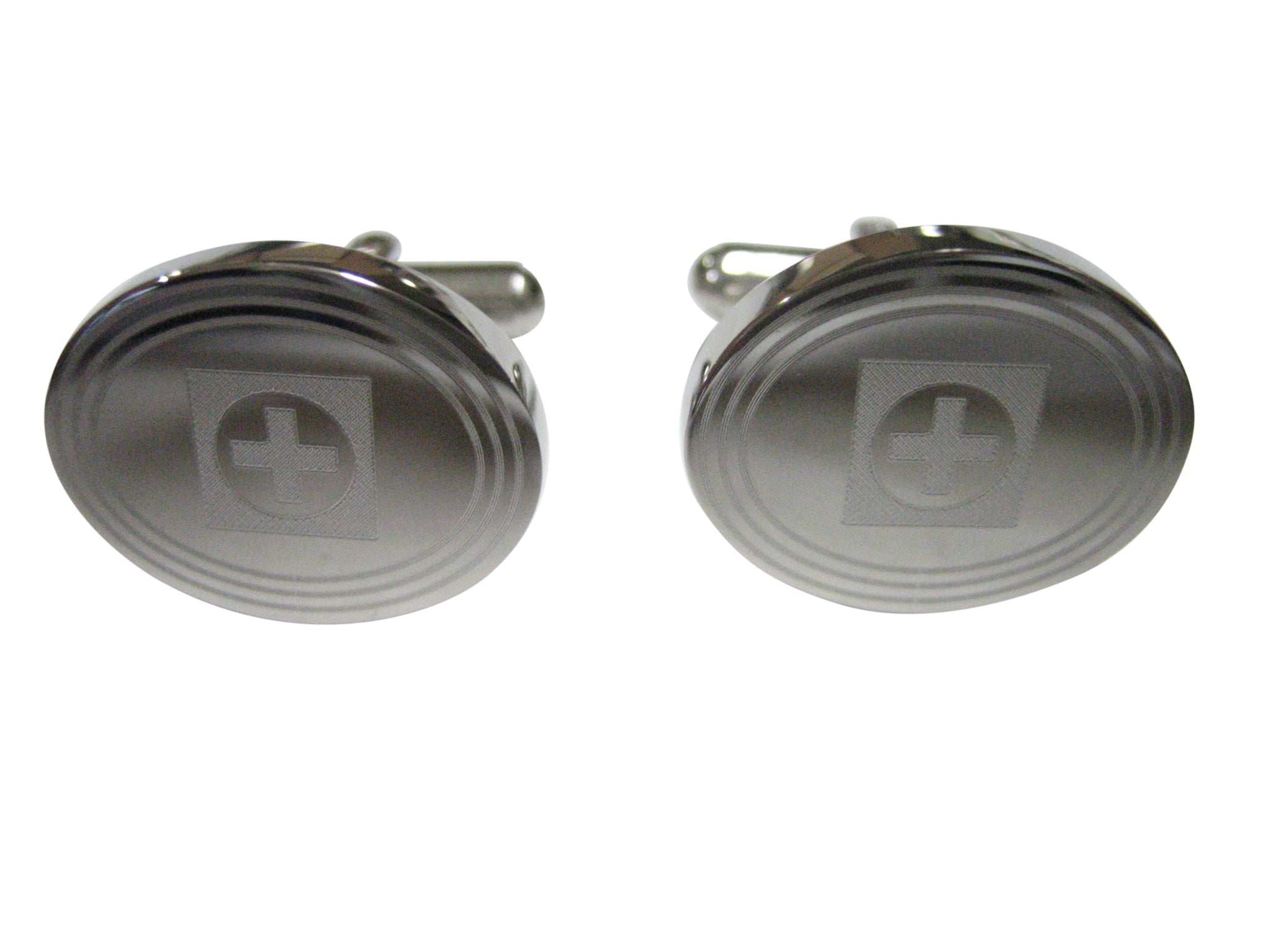 Silver Toned Etched Oval Medical Cross Symbol Cufflinks
