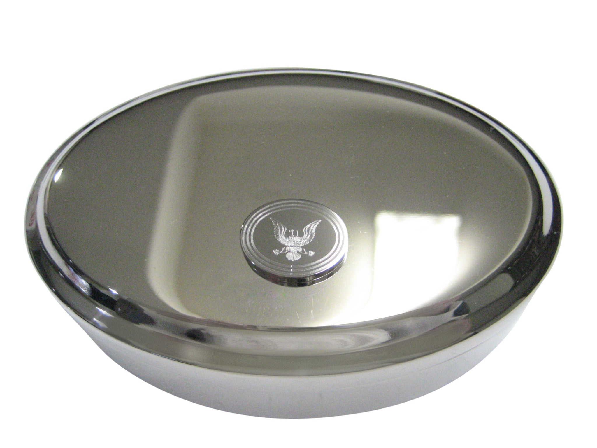 Silver Toned Etched Oval Mighty American Eagle Design Oval Trinket Jewelry Box