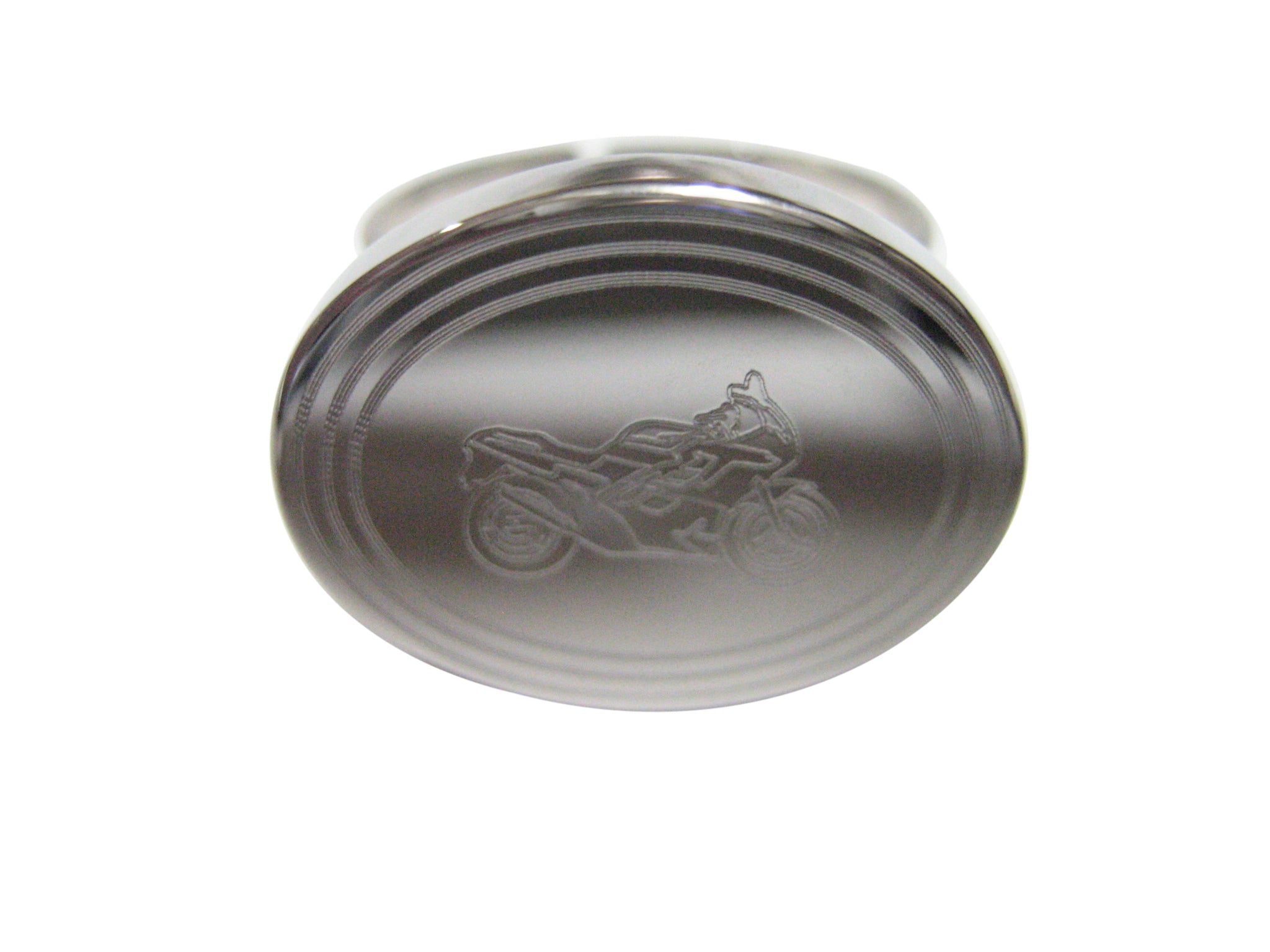 Silver Toned Etched Oval Motorcycle Adjustable Size Fashion Ring