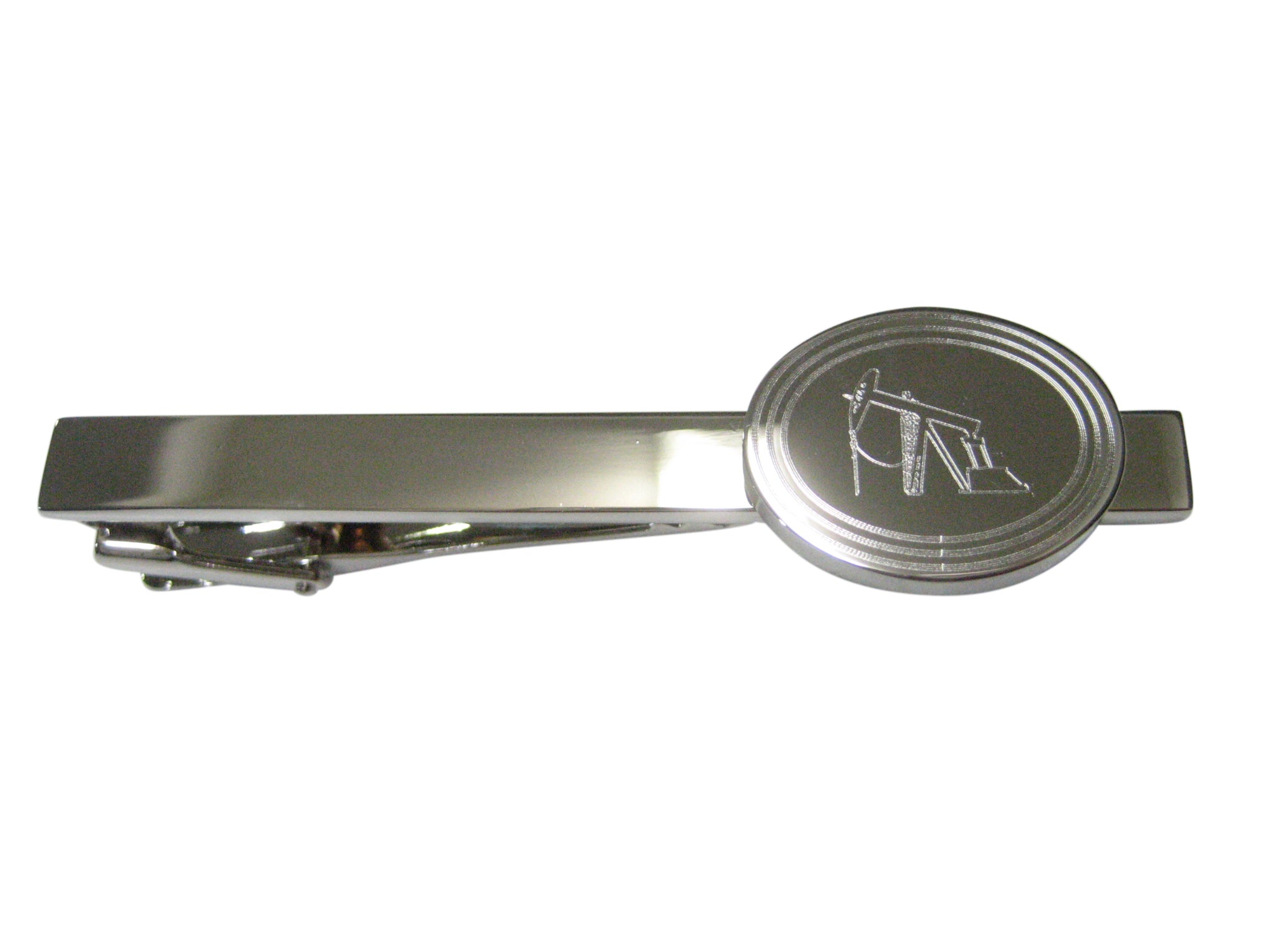 Silver Toned Etched Oval Oil Drill Tie Clip