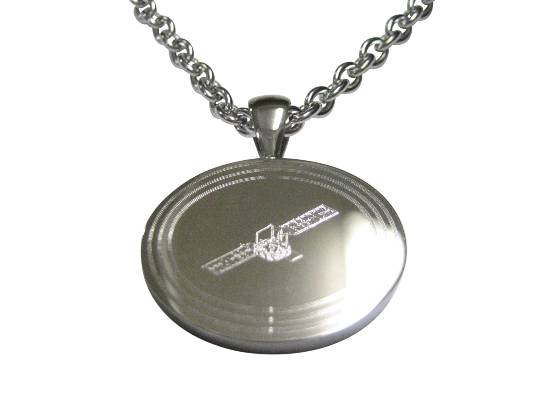 Silver Toned Etched Oval Satellite Pendant Necklace