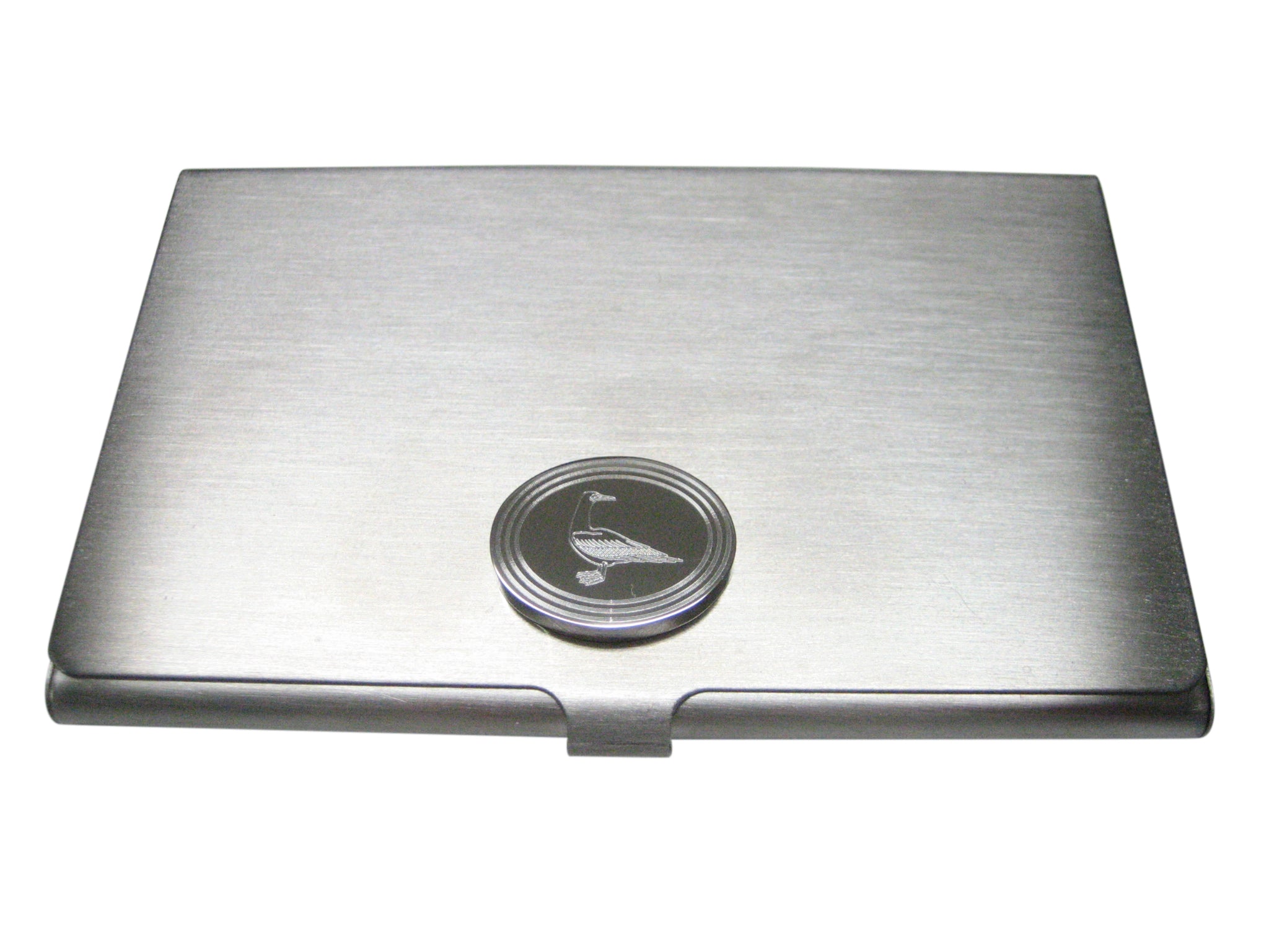 Silver Toned Etched Oval Seagull Bird Business Card Holder