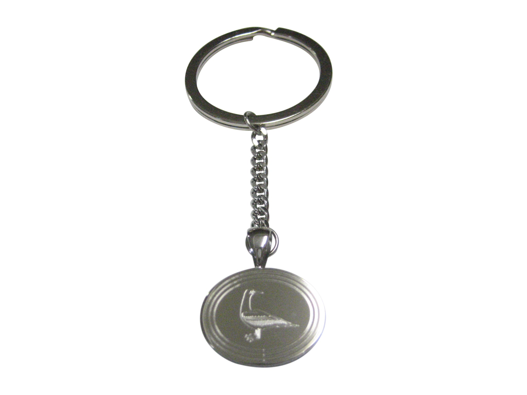 Silver Toned Etched Oval Seagull Bird Pendant Keychain