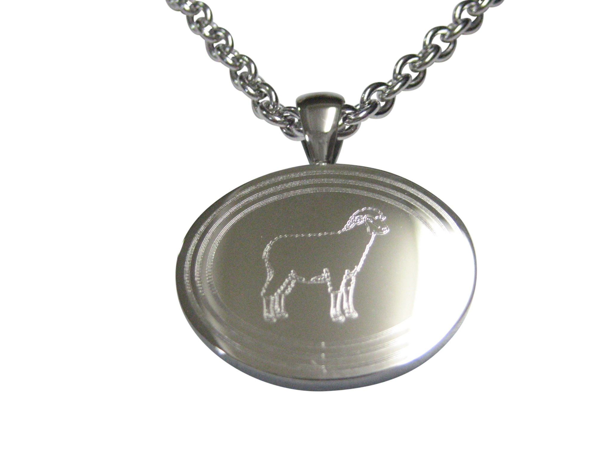 Silver Toned Etched Oval Sheep Pendant Necklace