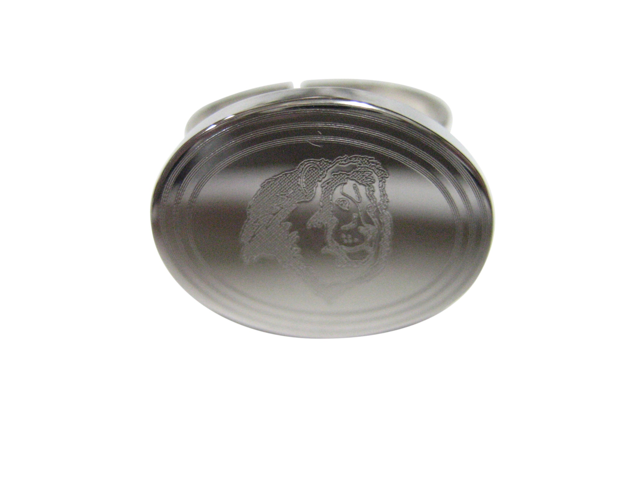 Silver Toned Etched Oval Side Facing Lion Head Adjustable Size Fashion Ring