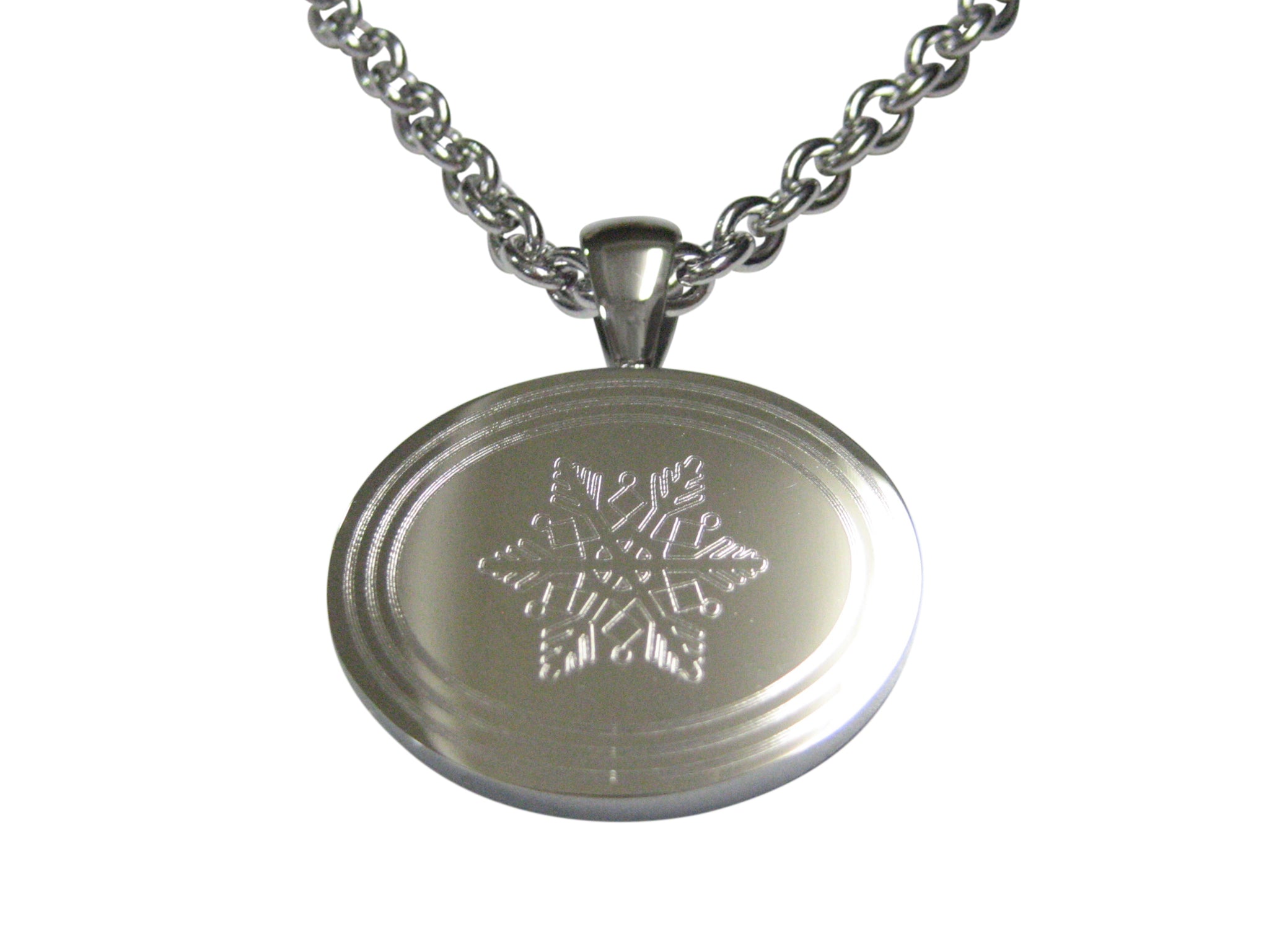 Silver Toned Etched Oval Snowflake Pendant Necklace