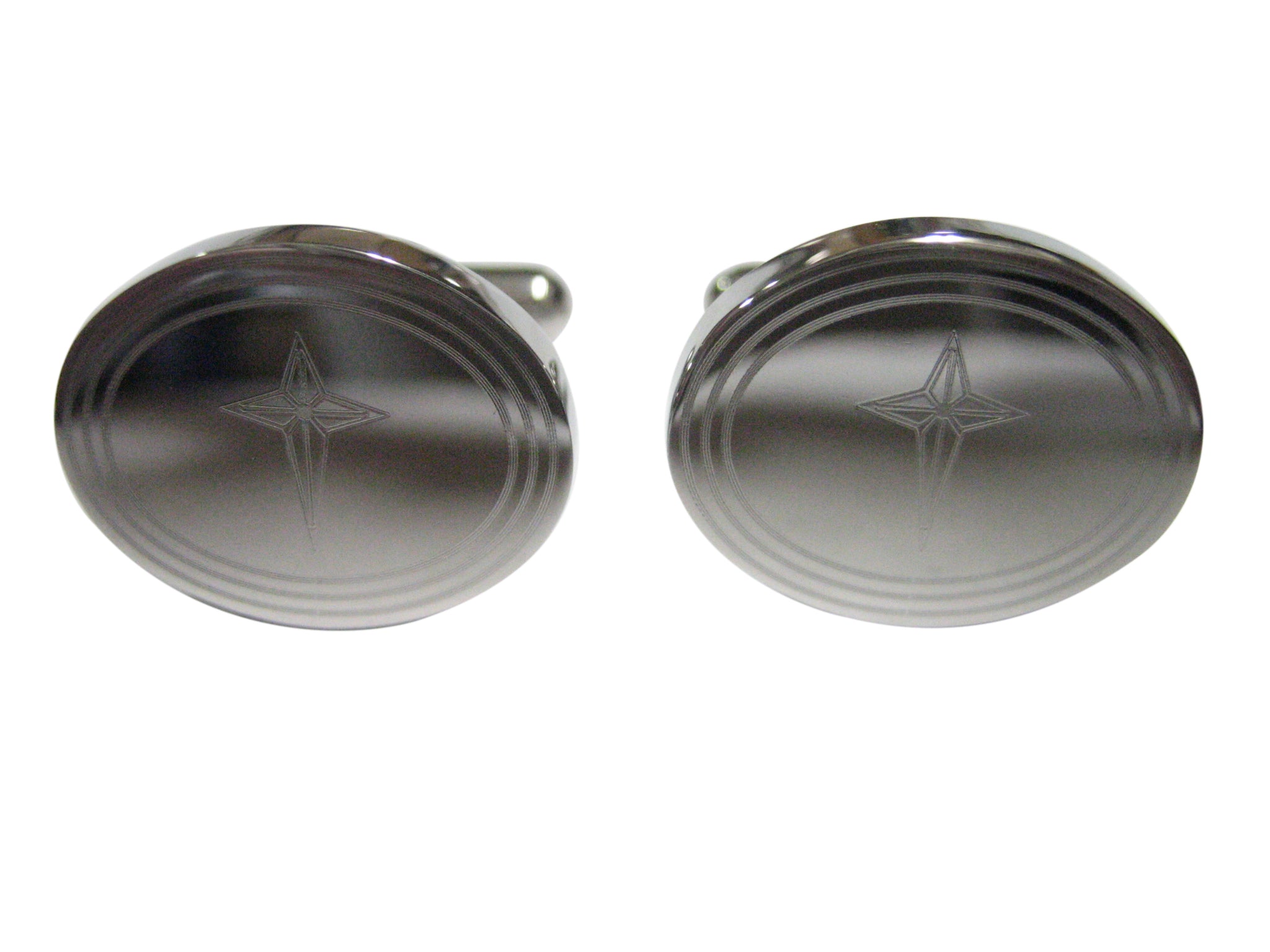 Silver Toned Etched Oval Star of Bethlehem Cufflinks