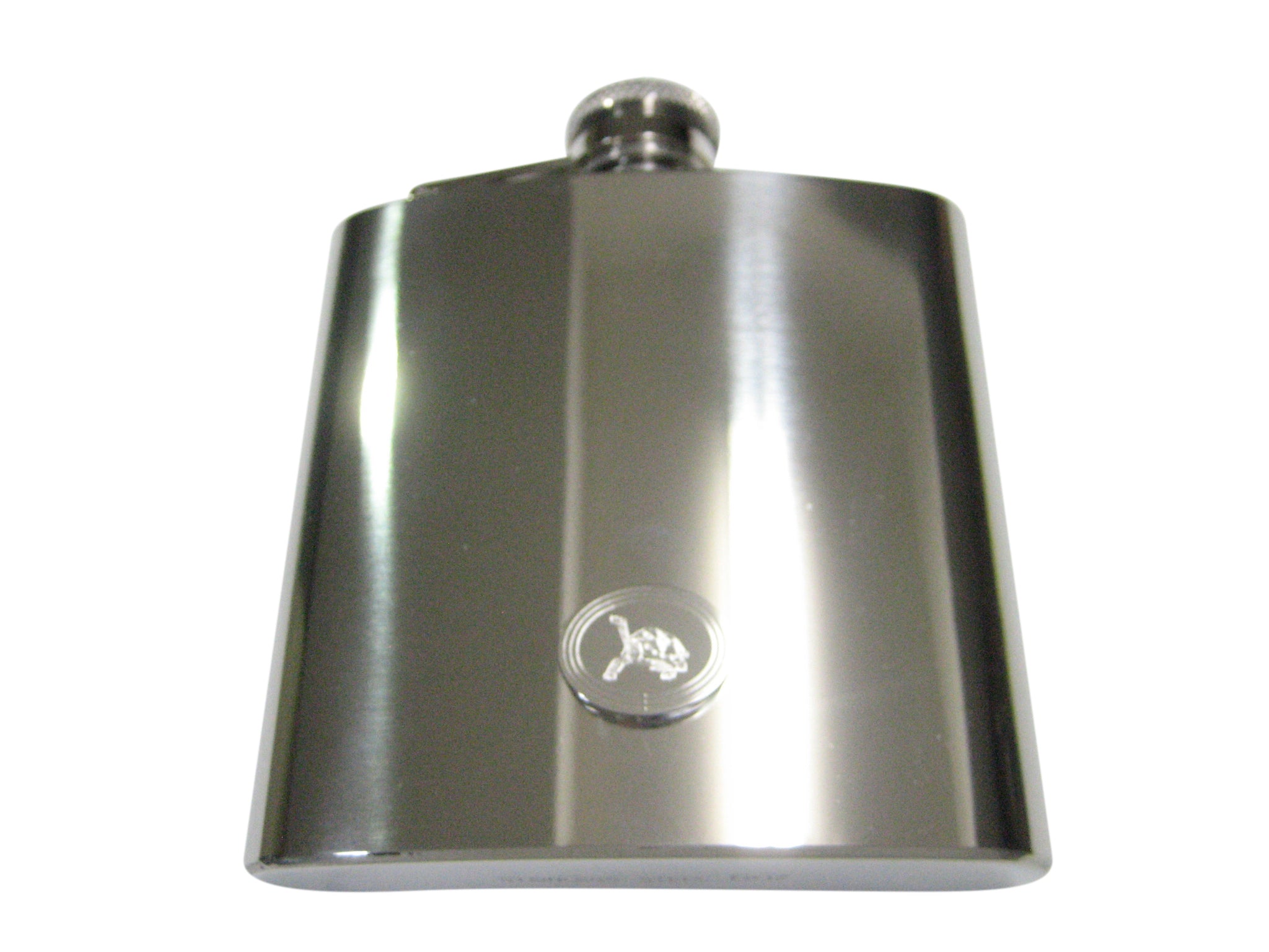 Silver Toned Etched Oval Tortoise Turtle 6oz Flask