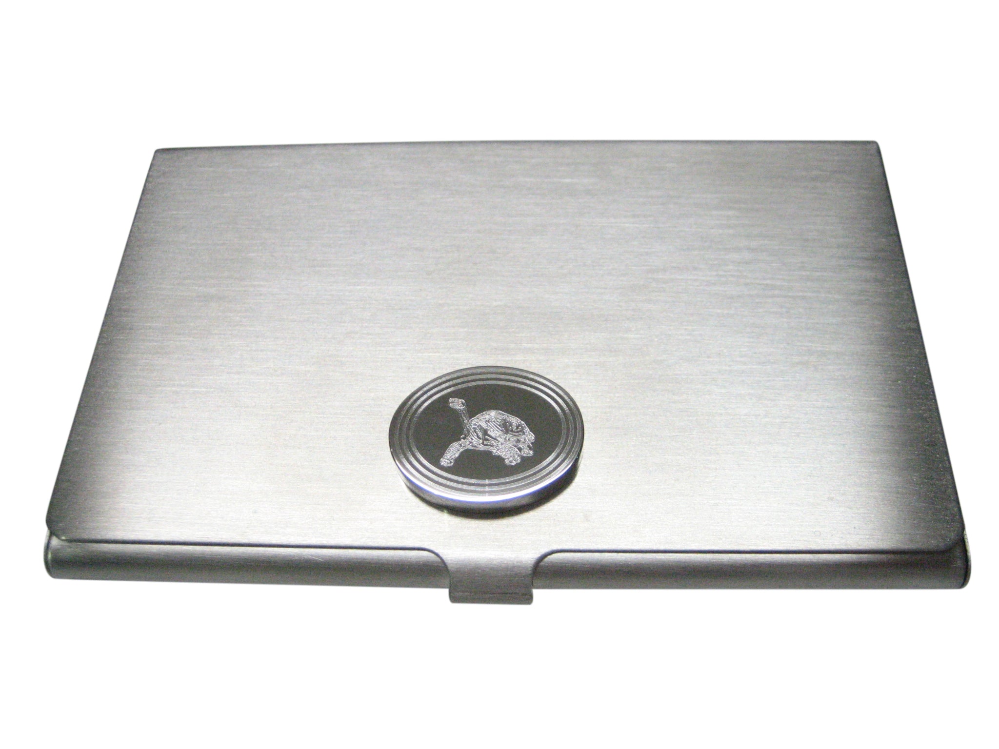 Silver Toned Etched Oval Tortoise Turtle Business Card Holder