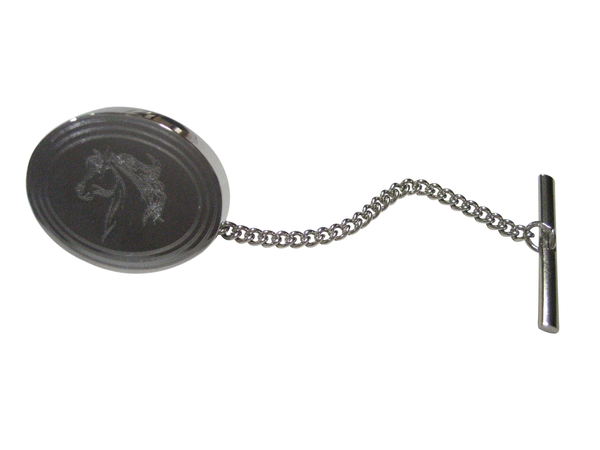 Silver Toned Etched Oval Wild Horse Head Tie Tack