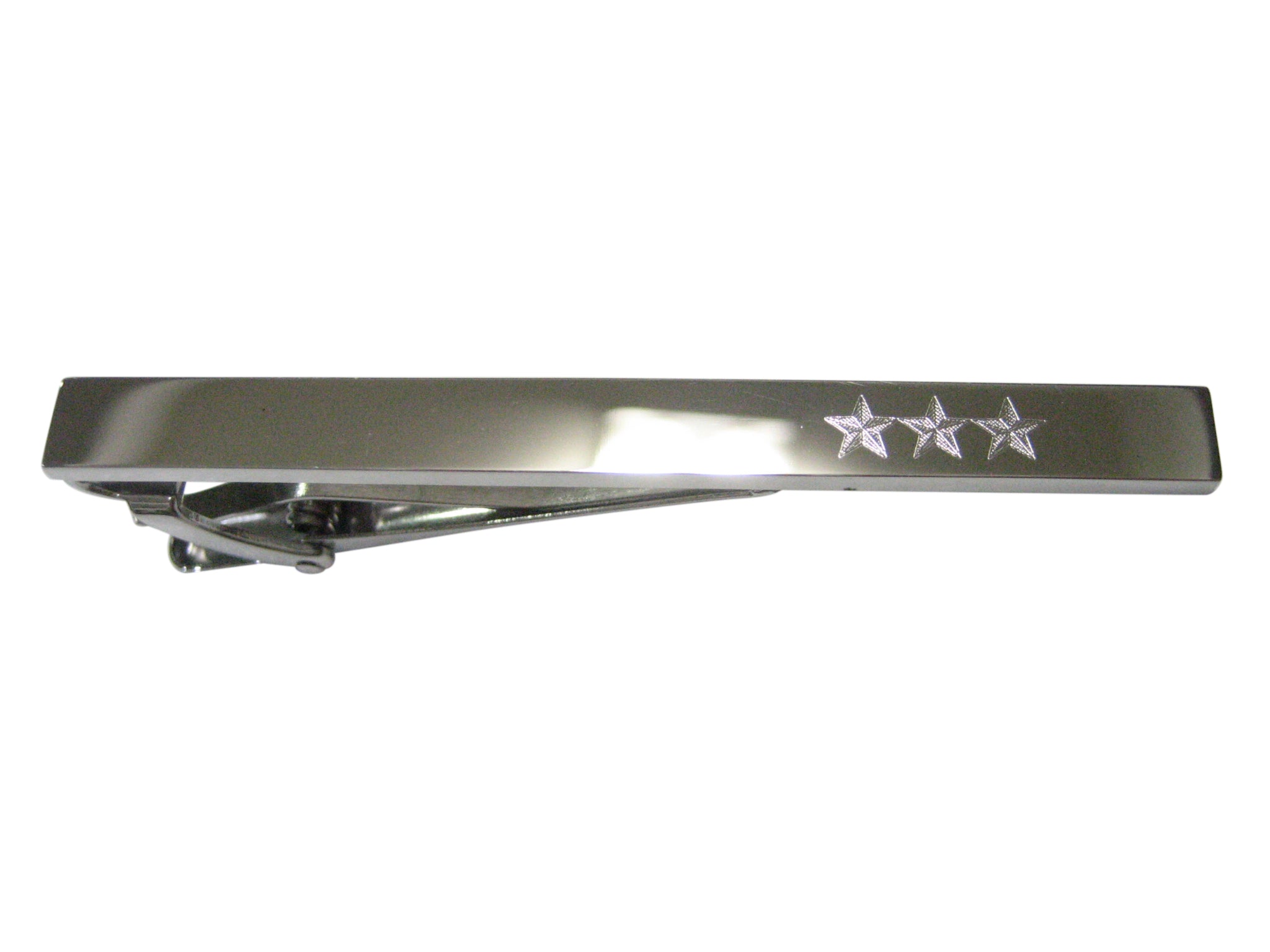 Silver Toned Etched Sleek 3 Stars Tie Clip