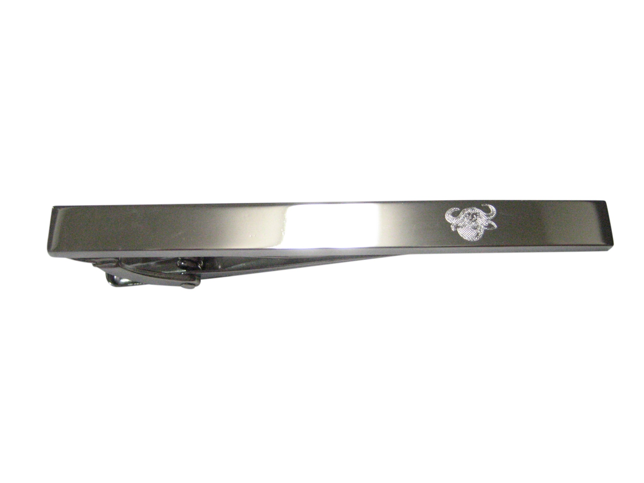Silver Toned Etched Sleek African Buffalo Head Tie Clip
