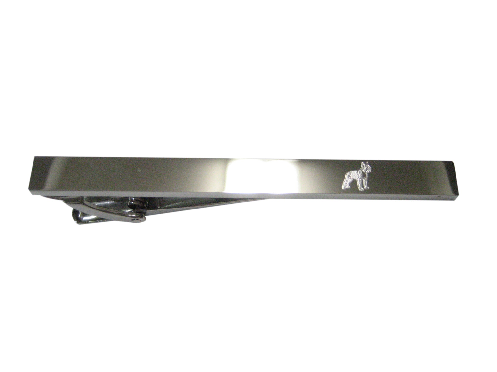 Silver Toned Etched Sleek Boston Terrier Dog Tie Clip