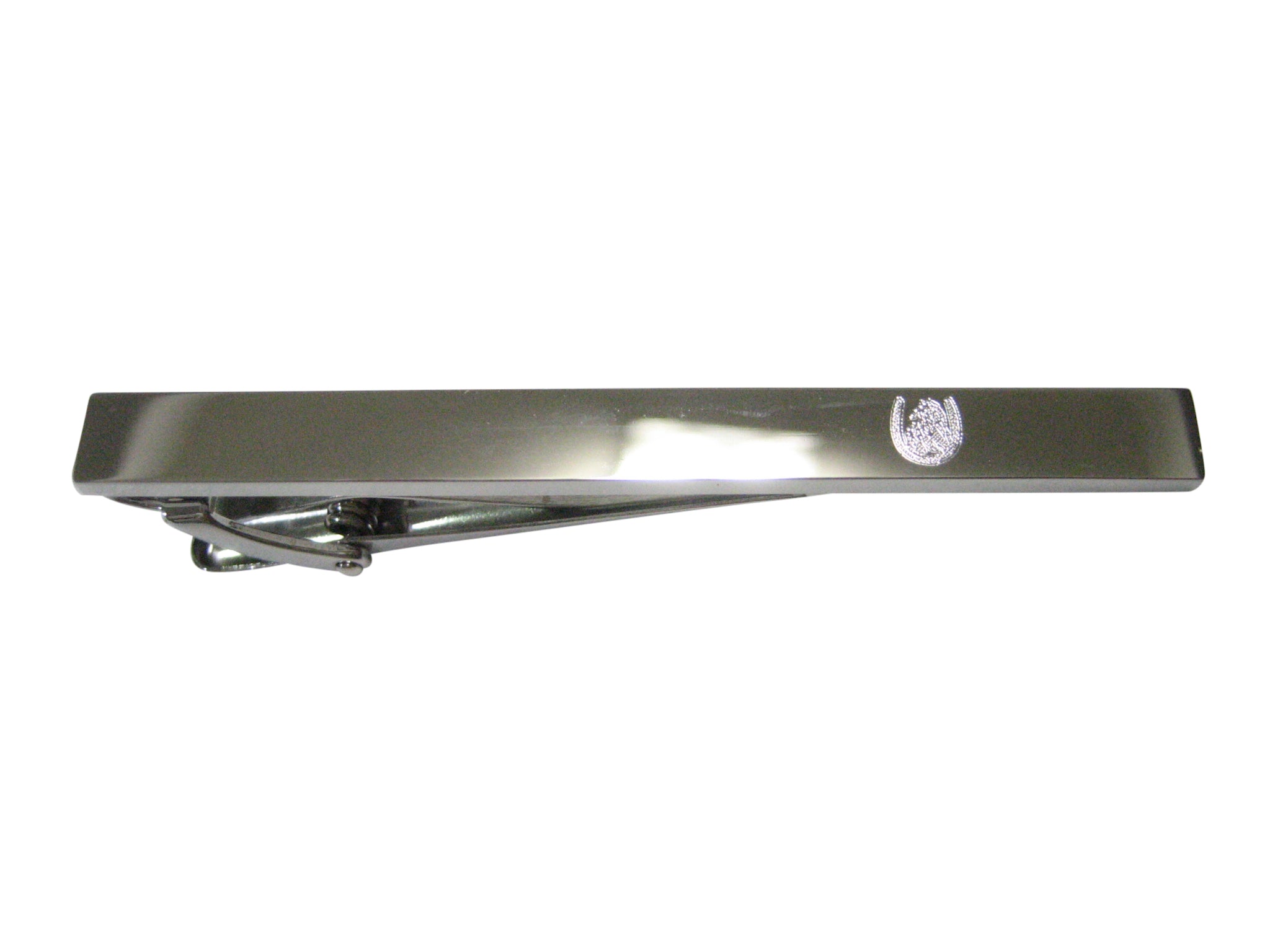 Silver Toned Etched Sleek Maned Horse and Horse Shoe Tie Clip