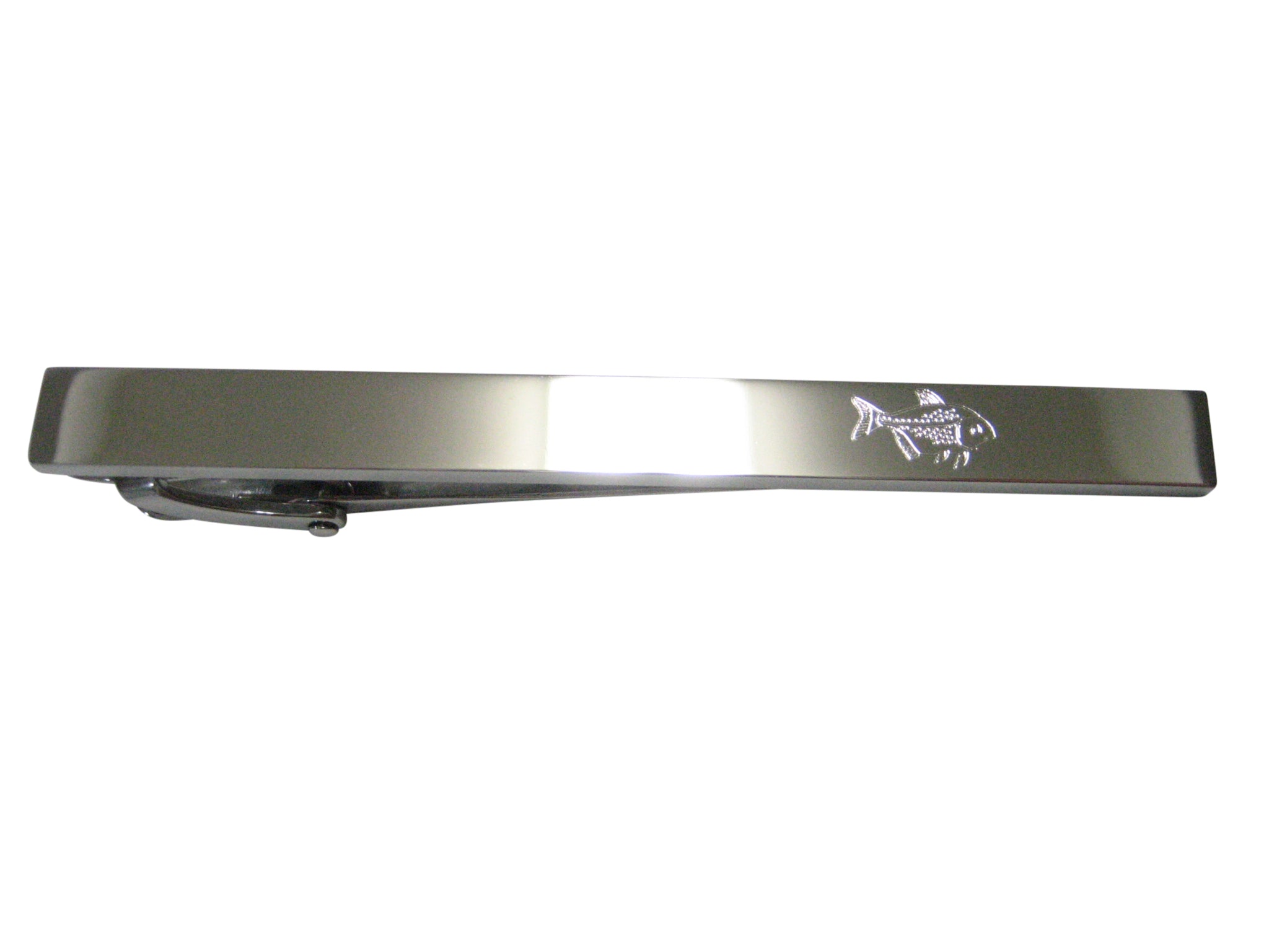 Silver Toned Etched Sleek Piranha Pirana Fish Tie Clip