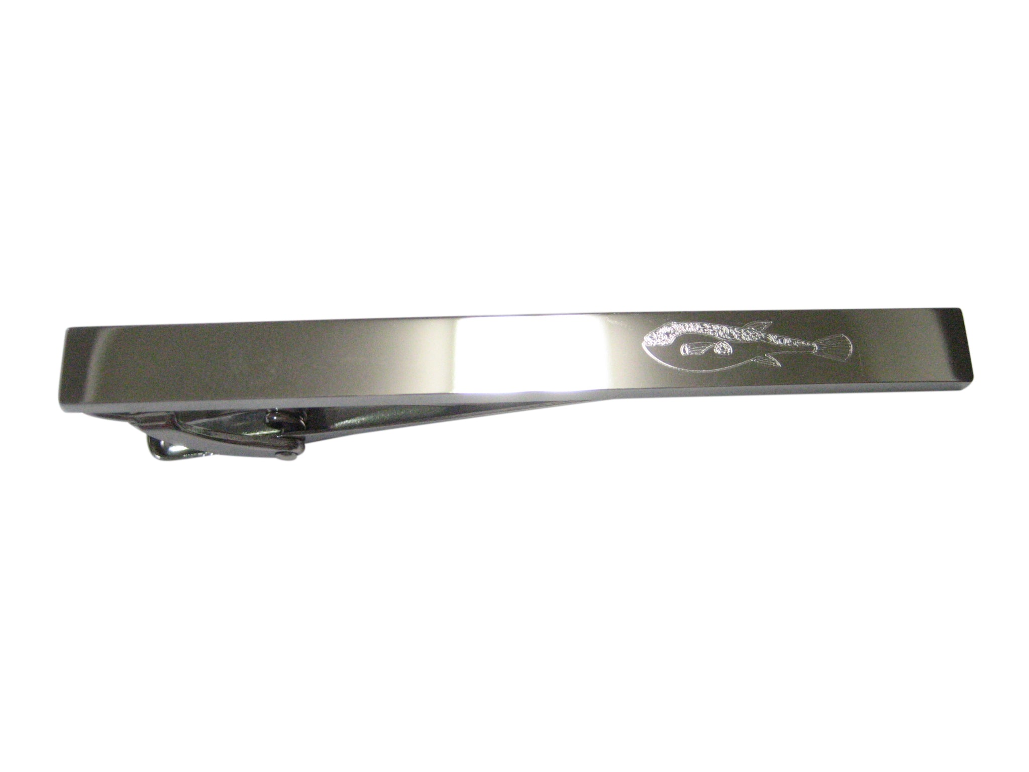 Silver Toned Etched Sleek Puffer Fish Tie Clip