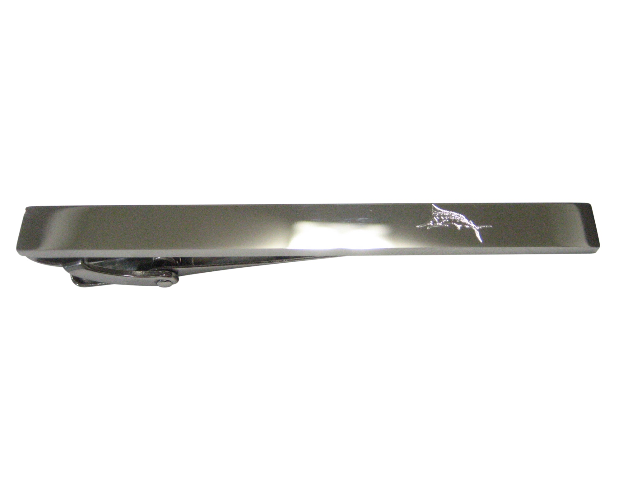 Silver Toned Etched Sleek Sailfish Marlin Fish Tie Clip