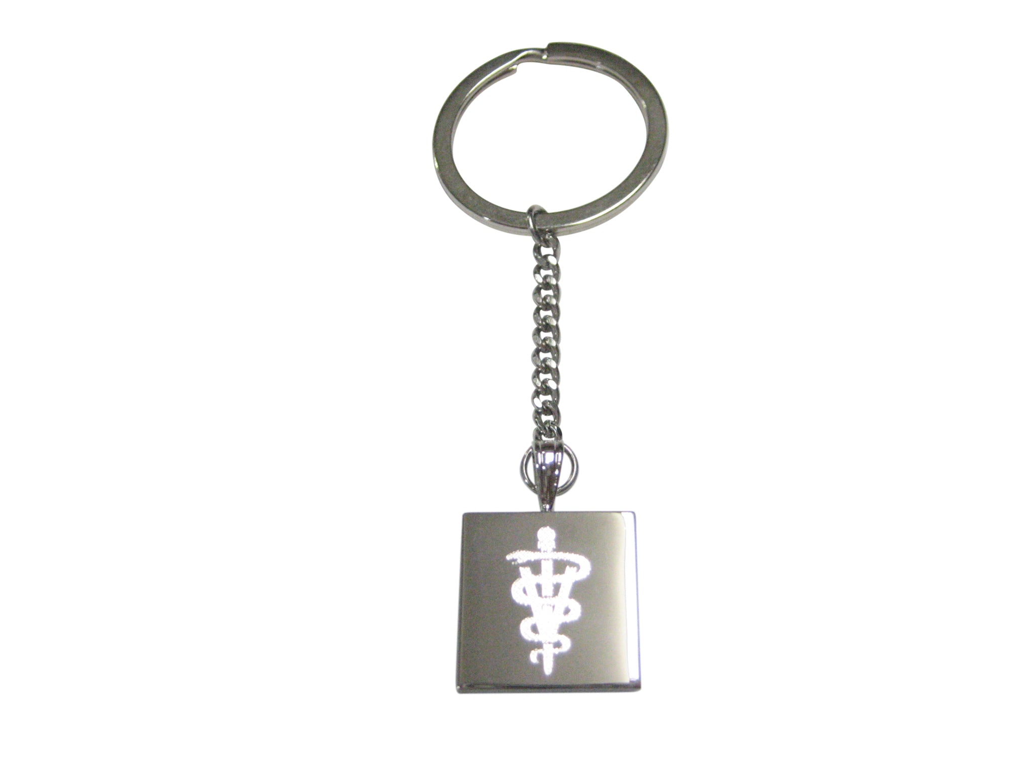 Silver Toned Etched Veterinary Caduceus Symbol Pendant Keychain