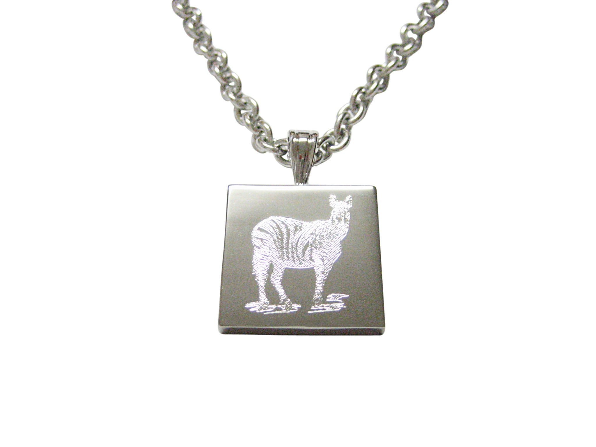 Silver Toned Etched Zebra Necklace