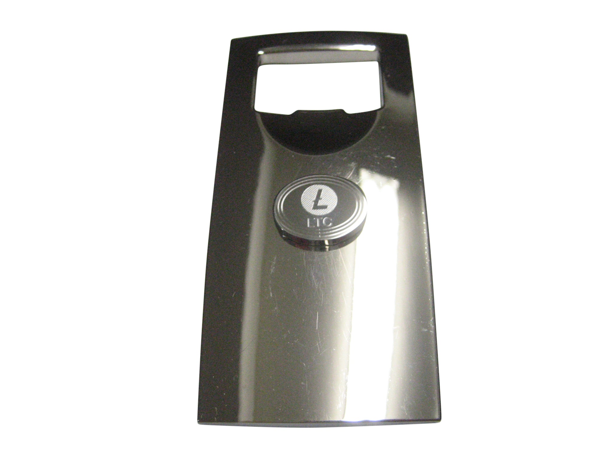 Silver Toned Oval Etched Litecoin Coin Cryptocurrency Blockchain Bottle Opener