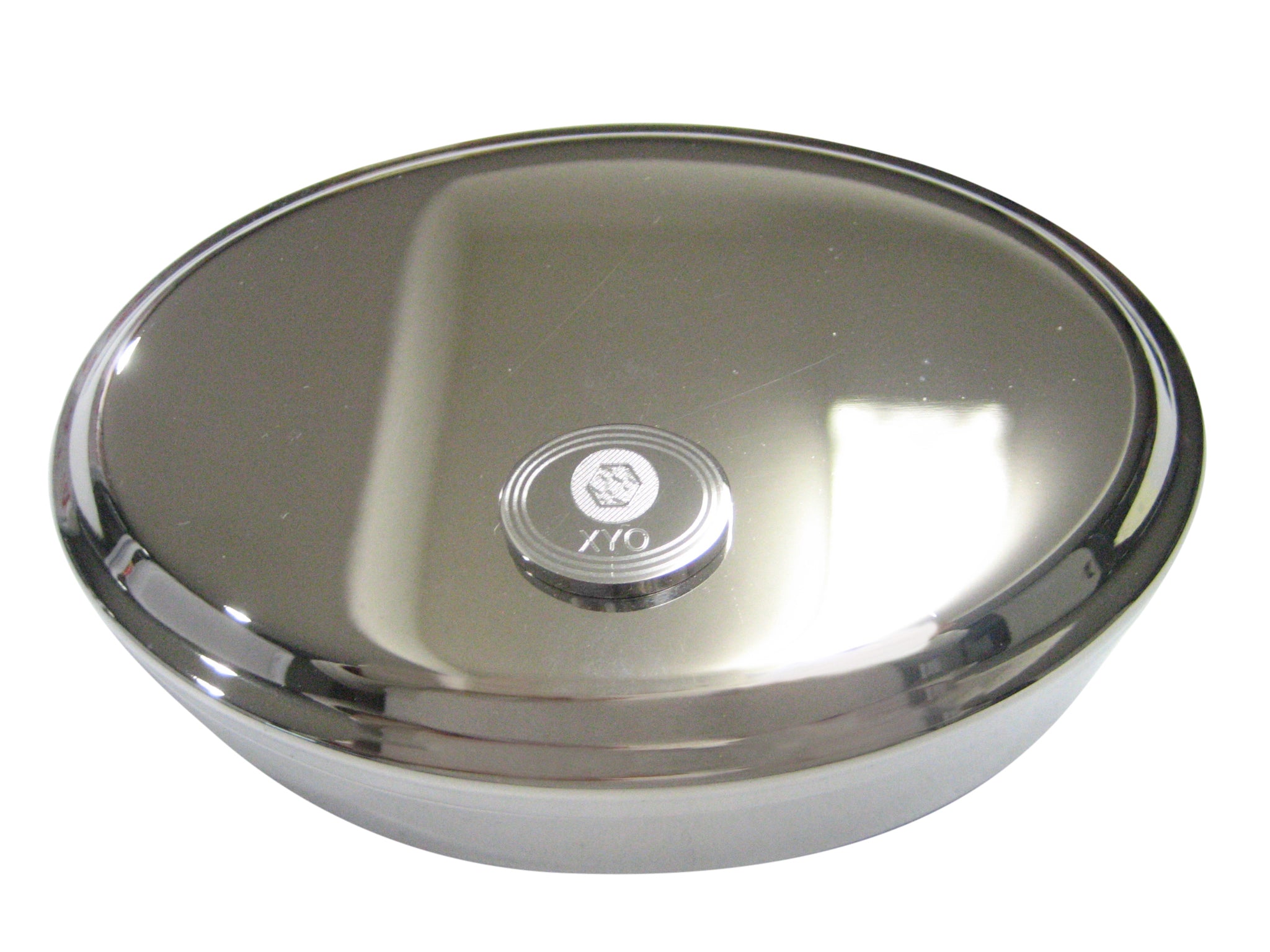 Silver Toned Oval Pendant Etched XYO Coin Cryptocurrency Blockchain Oval Trinket Jewelry Box