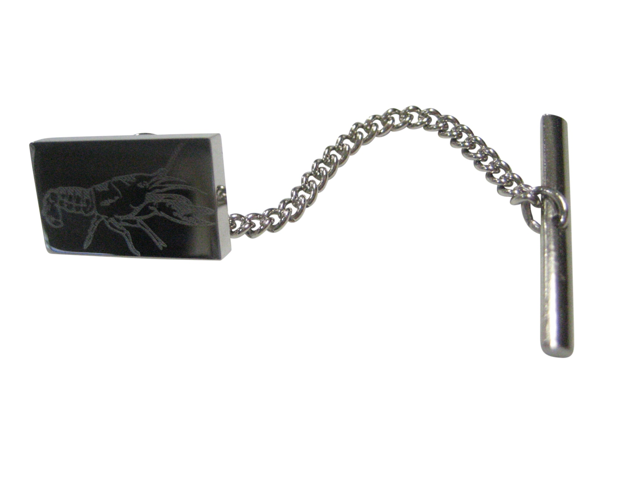 Silver Toned Rectangular Etched Crayfish Crawfish Crawdad Tie Tack