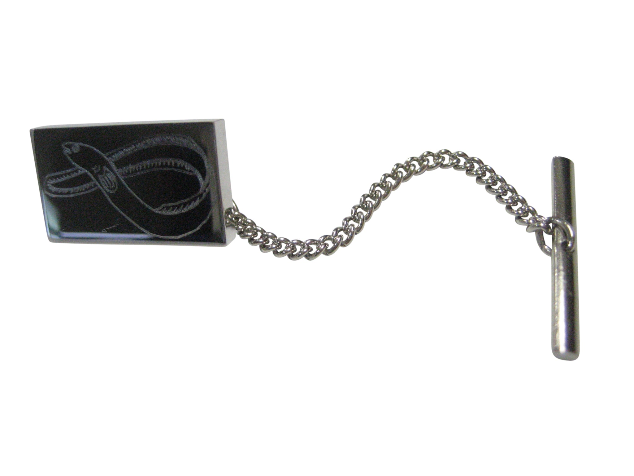 Silver Toned Rectangular Etched Eel Fish Tie Tack