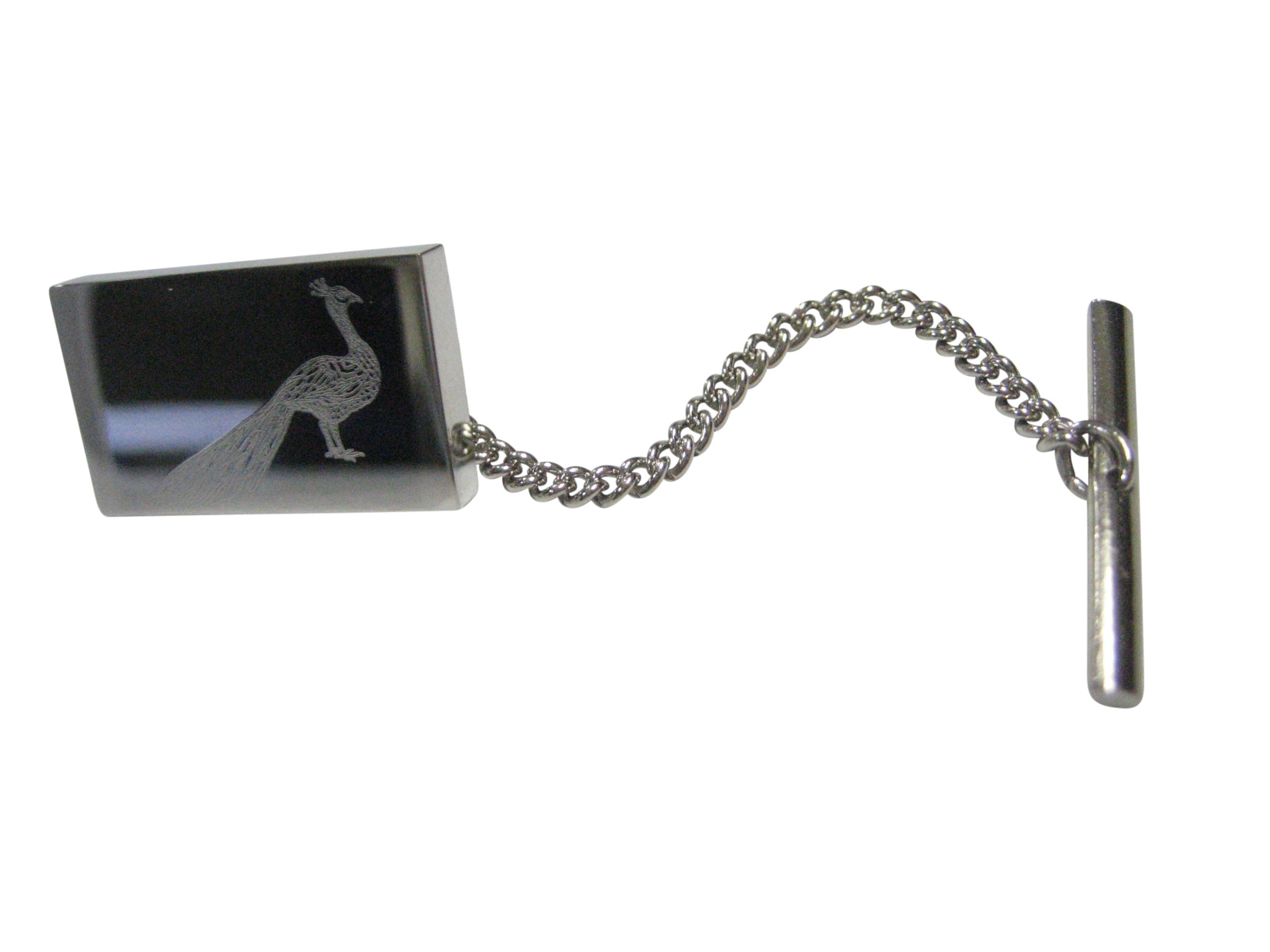 Silver Toned Rectangular Etched Peacock Bird Tie Tack