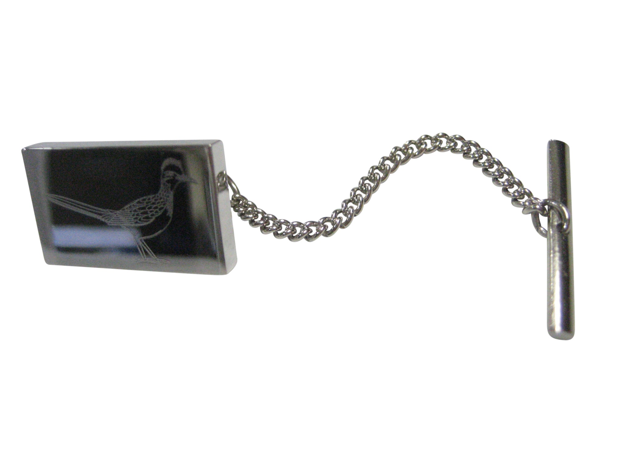 Silver Toned Rectangular Etched Roadrunner Bird Tie Tack