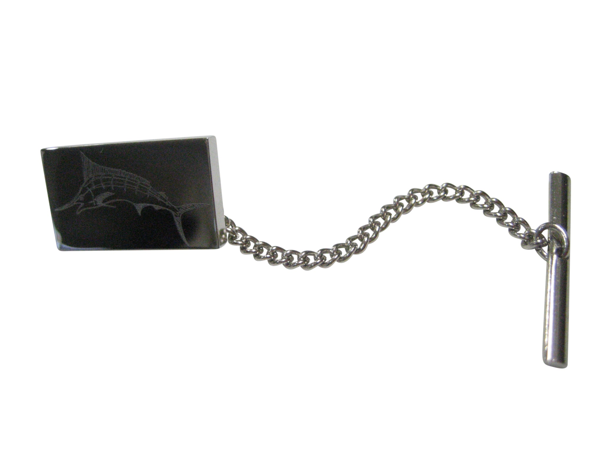 Silver Toned Rectangular Etched Sailfish Marlin Fish Tie Tack