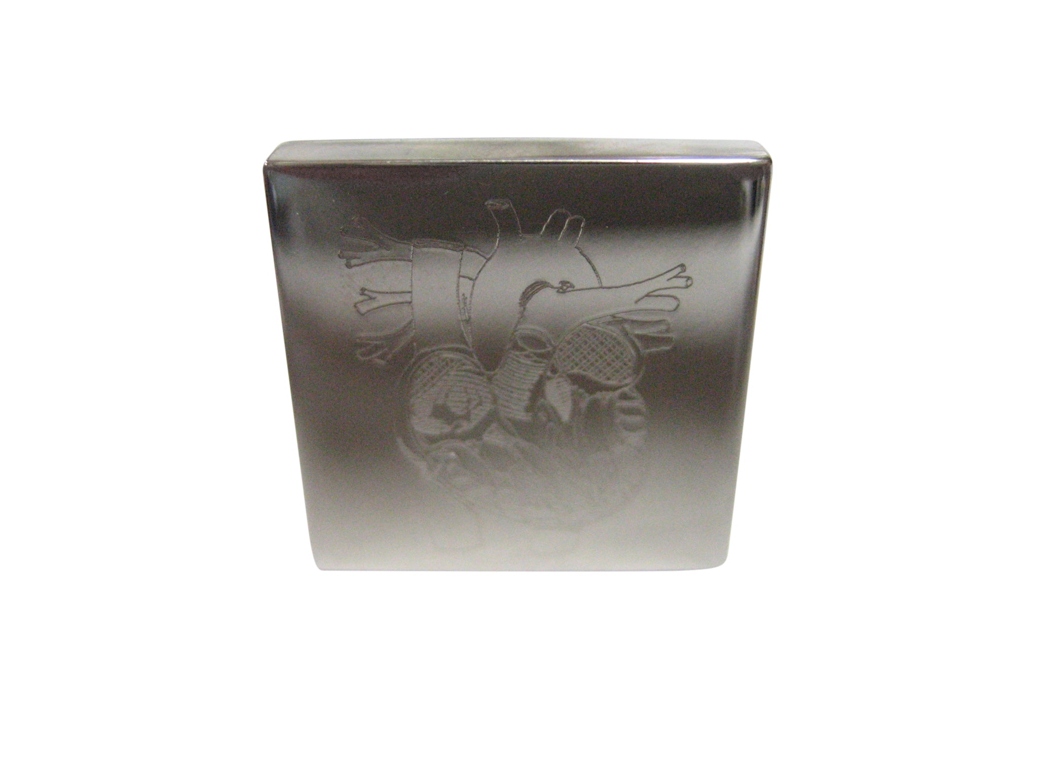 Silver Toned Square Etched Anatomical Heart Adjustable Size Fashion Ring