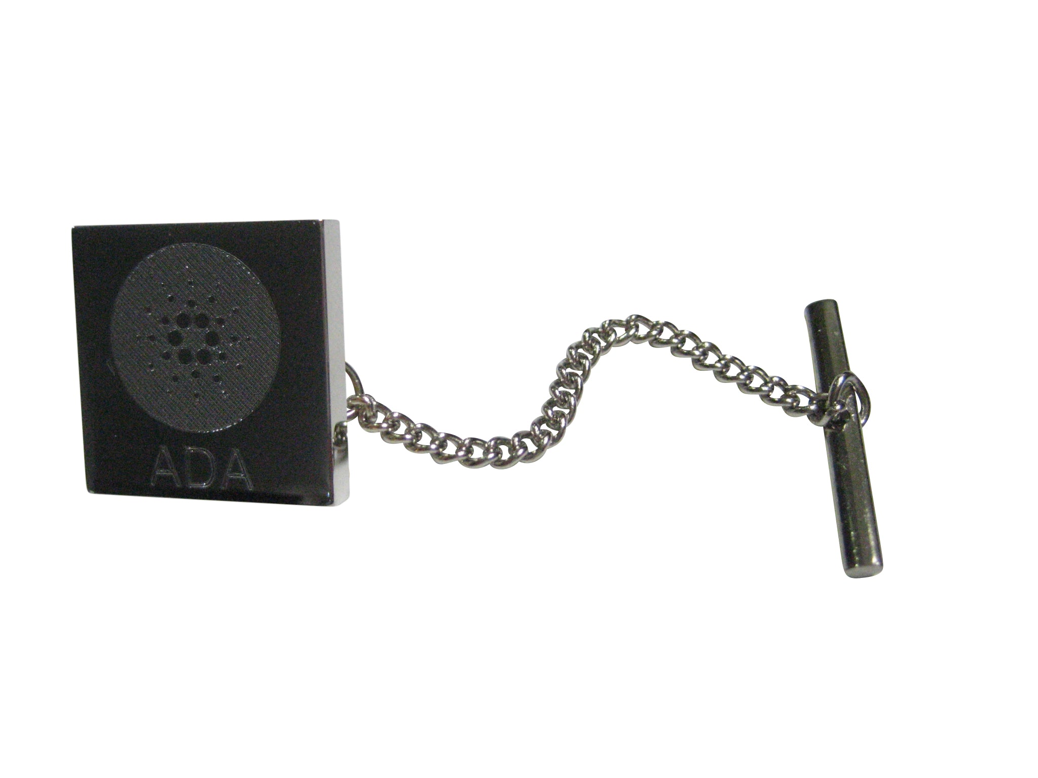 Silver Toned Square Etched Cardano Coin Cryptocurrency Blockchain Tie Tack