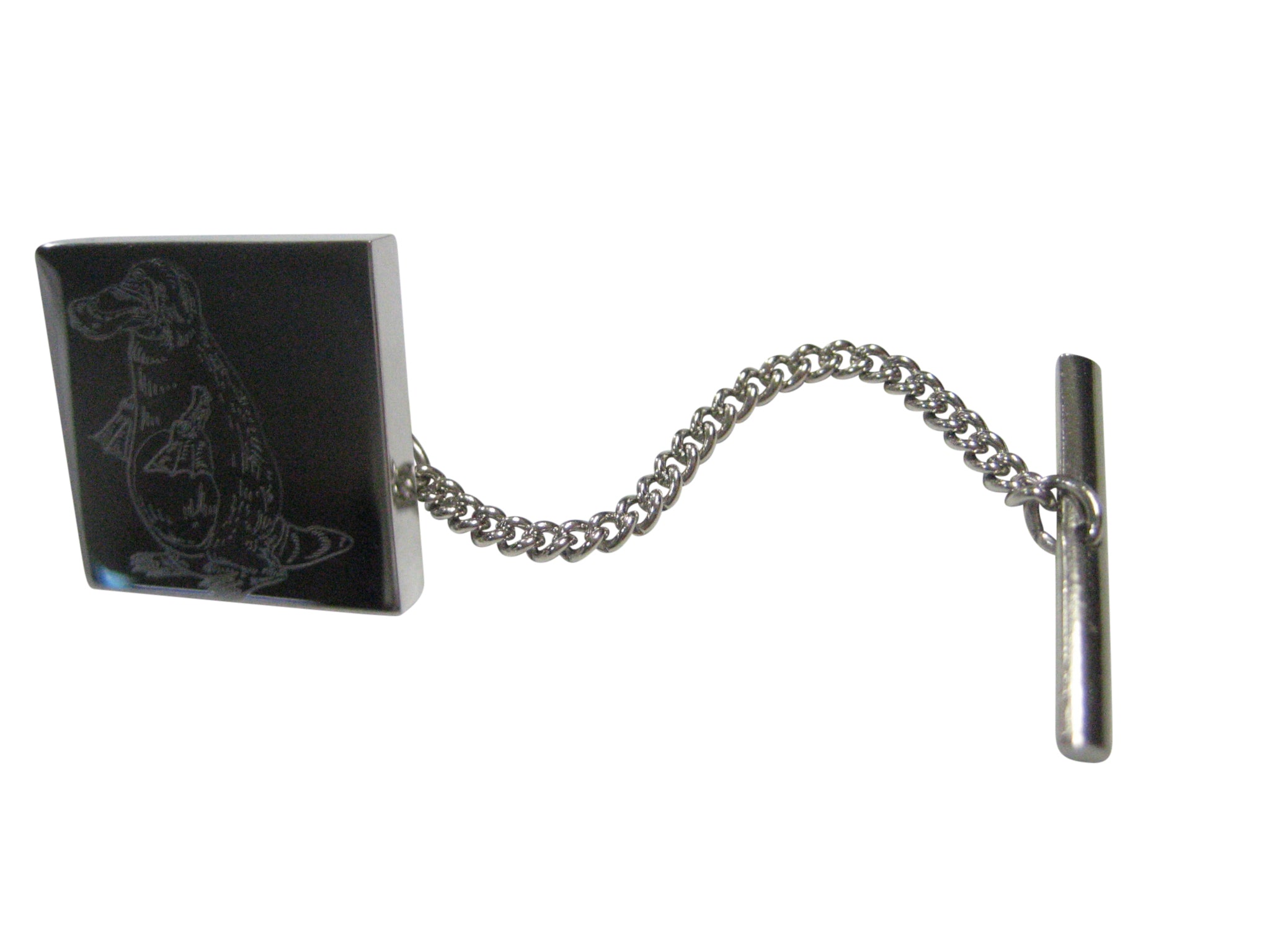 Silver Toned Square Etched Duck Billed Platypus Tie Tack