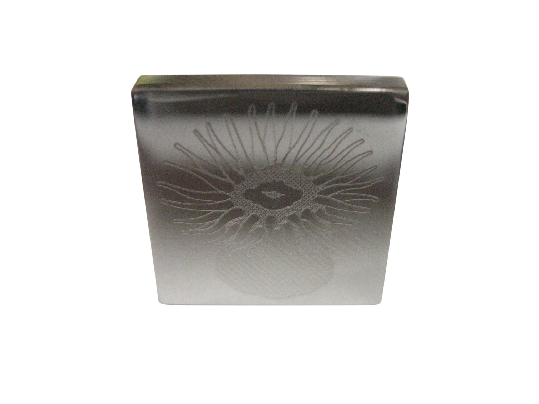 Silver Toned Square Etched Sea Anemone Adjustable Size Fashion Ring