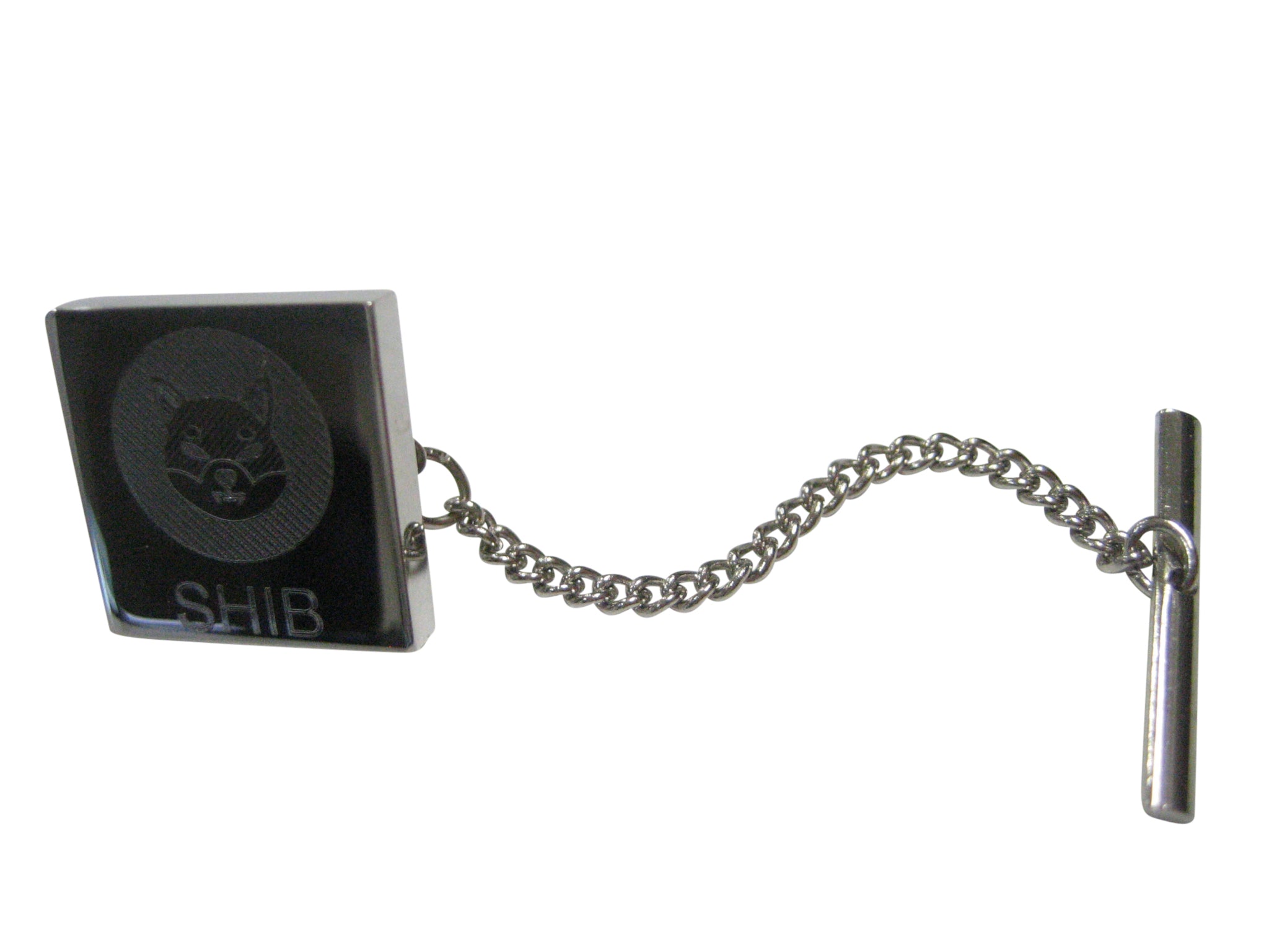 Silver Toned Square Etched Shiba Inu Coin SHIB Cryptocurrency Blockchain Tie Tack