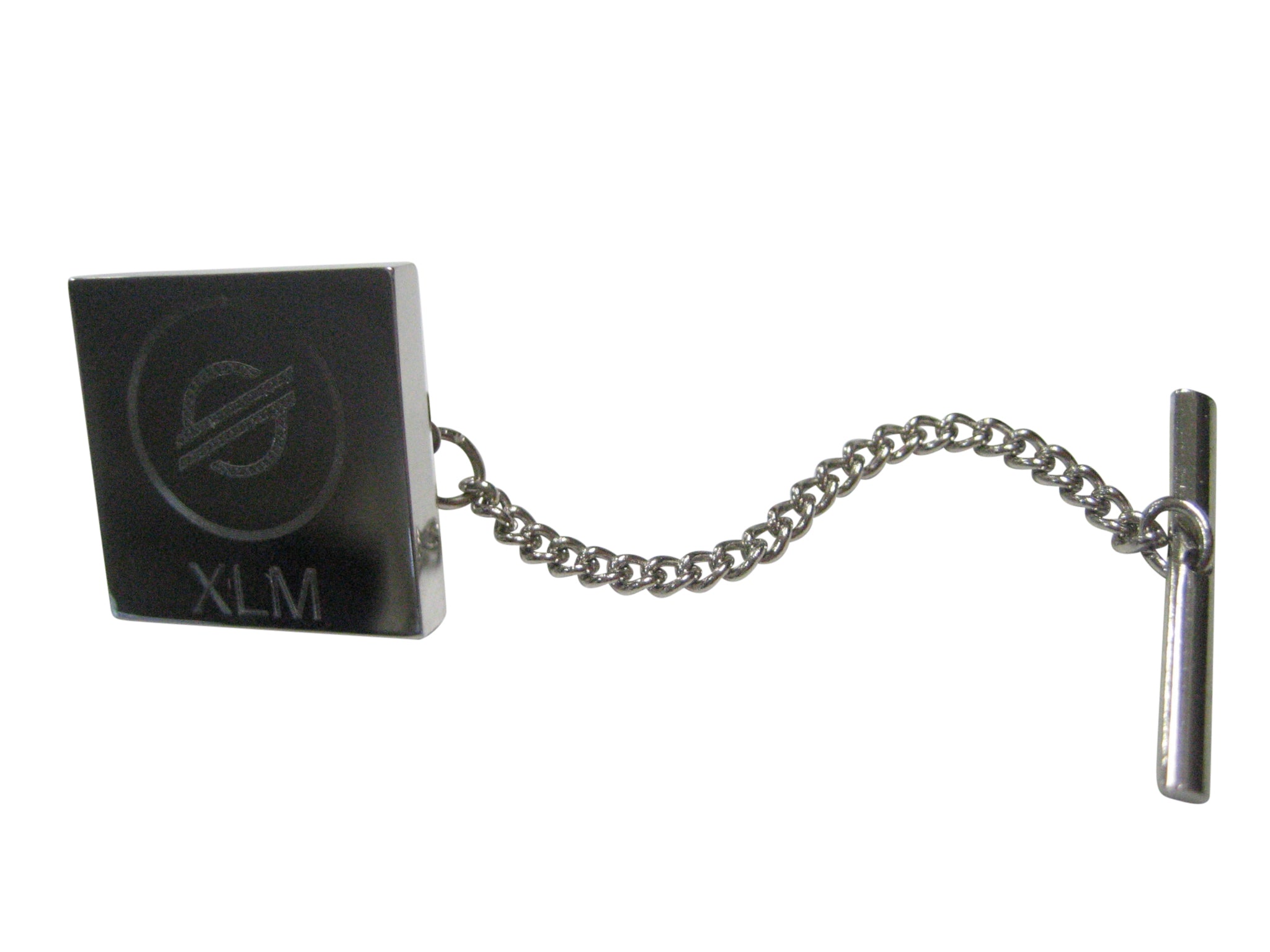 Silver Toned Square Etched Stellar Lumens Coin XLM Cryptocurrency Blockchain Tie Tack