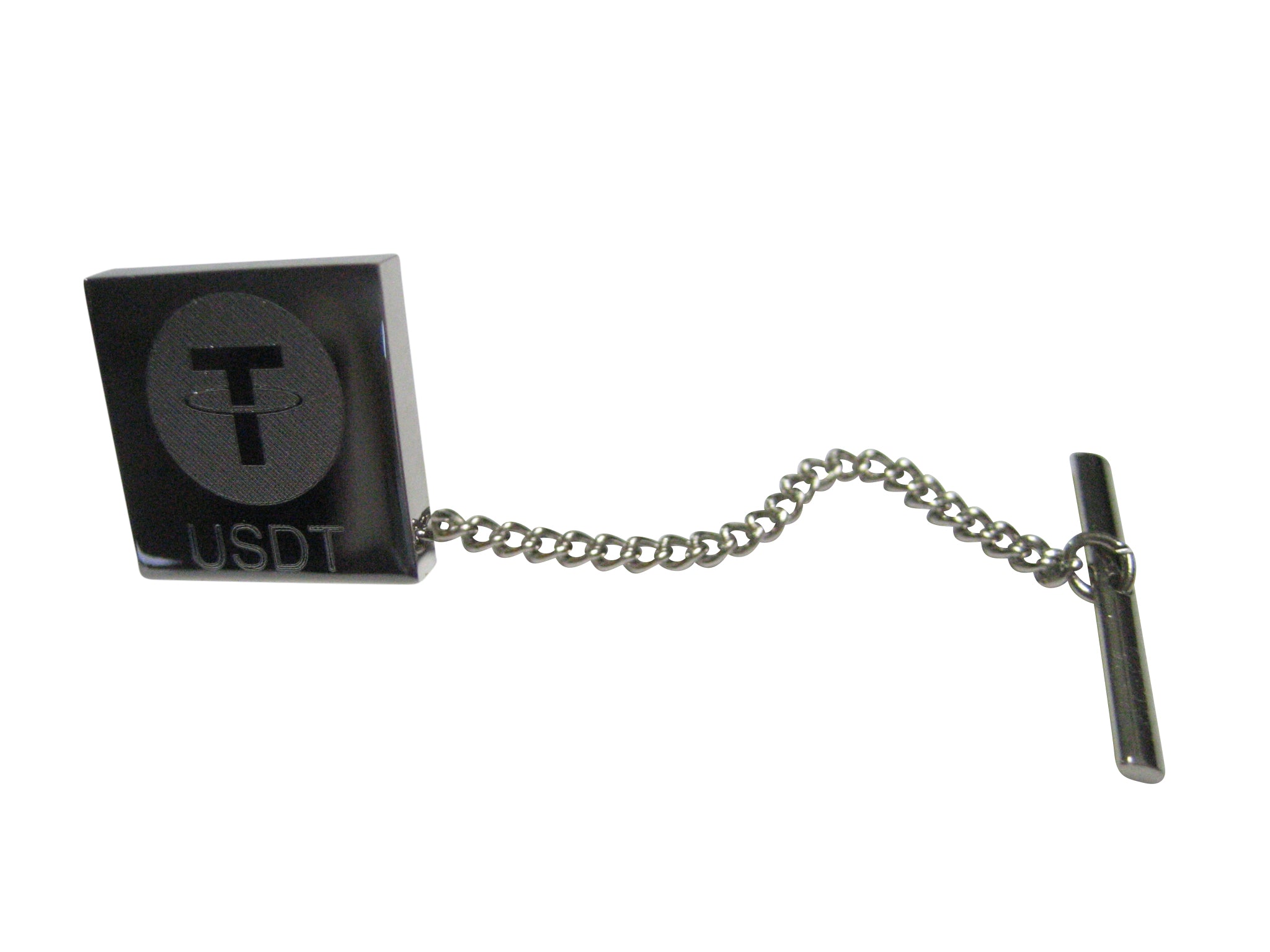 Silver Toned Square Etched Tether Coin Cryptocurrency Blockchain Tie Tack