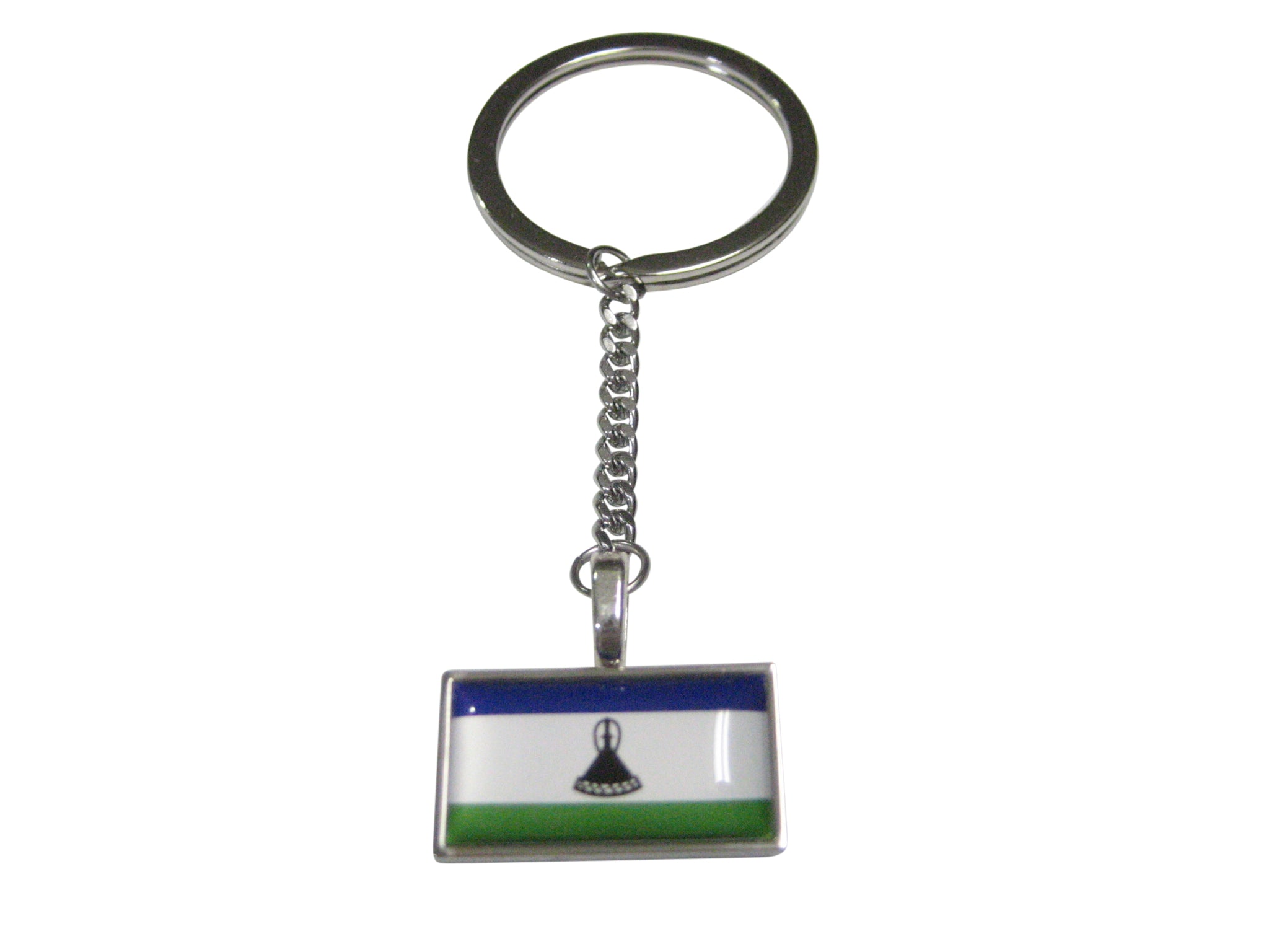 Thin Bordered Kingdom of Lesotho Flag Pendant Keychain